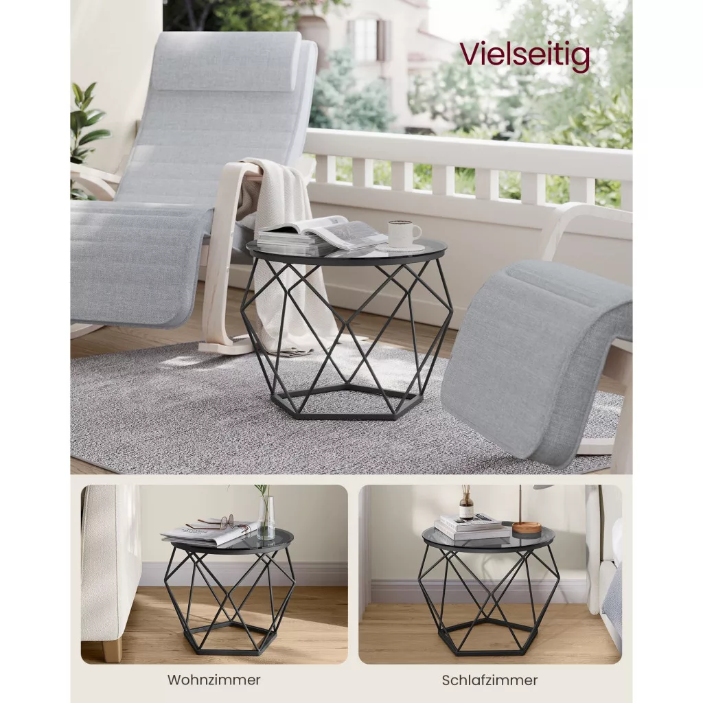 Stabil és Erős: A minőségi edzett üveg és a masszív acélkeret keveréke stabilitást biztosít ennek az oldalasztal szettnek, így nem fog inogni minden alkalommal, amikor felveszi a kávéscsészéjét. Minden kis asztal akár 20 kg-ot is elbír