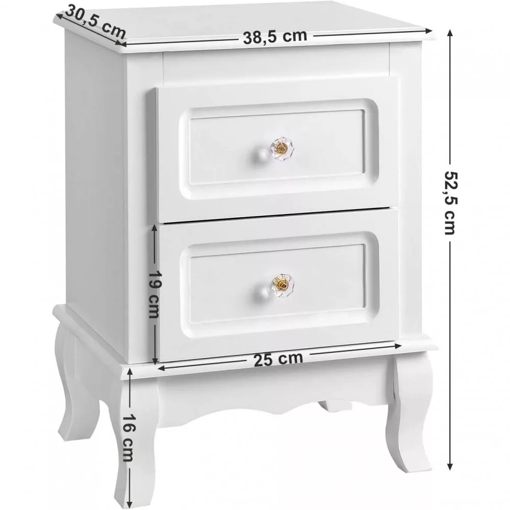 VASAGLE 2 db éjjeliszekrény két fiókkal, fehér 30x38x52cm