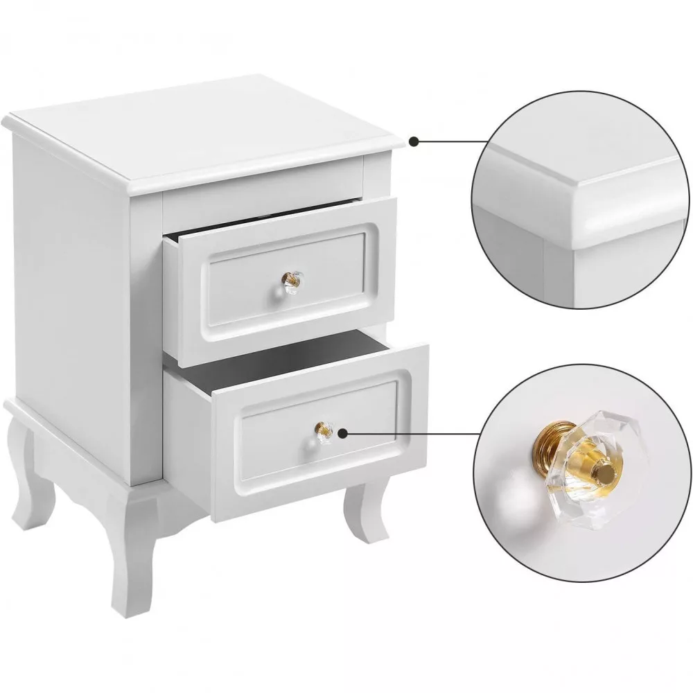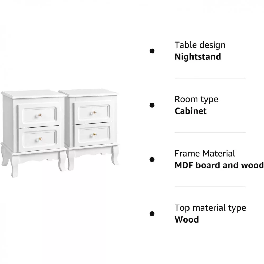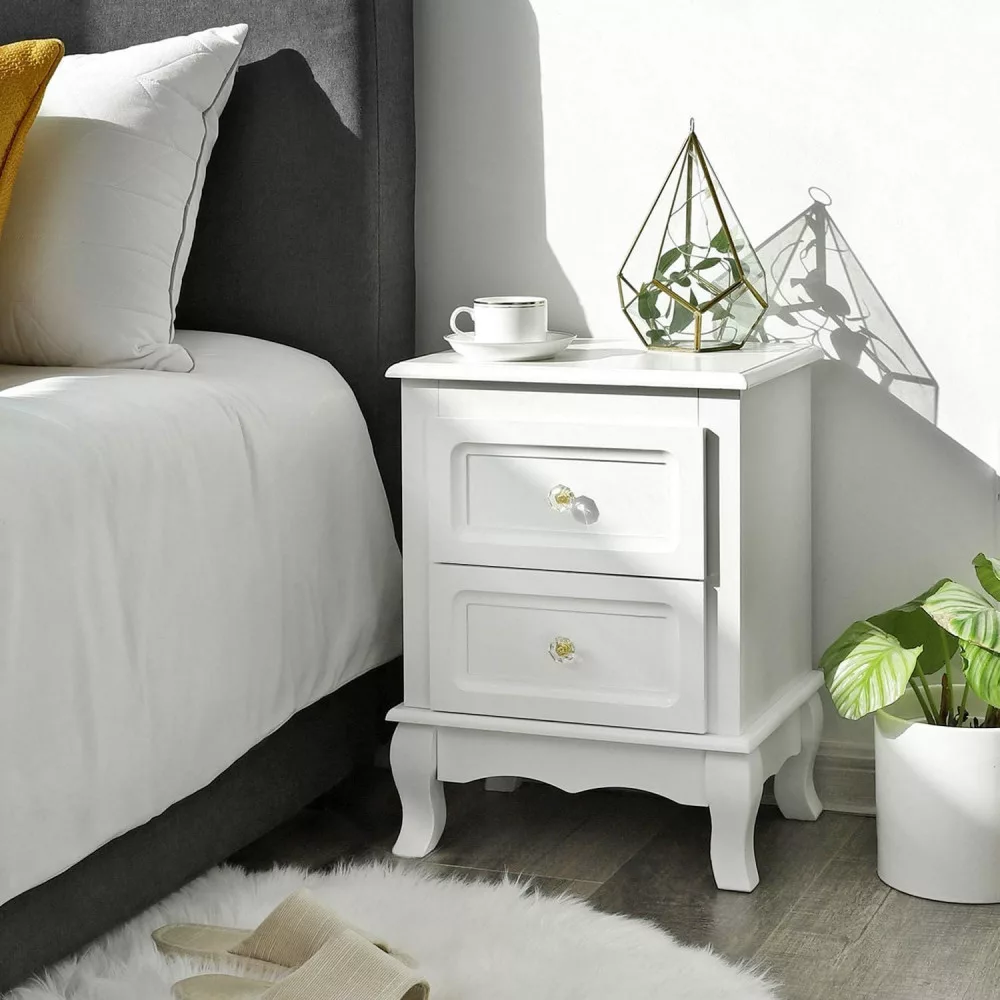 Egyszerű fehér romantika: Ez az éjjeliszekrény szett egyedi kialakításával, fehér, nem mérgező, UV-kezelt festékkel gazdag európai elemeket hordoz, miközben nagyon modern, romantikus stílust kölcsönöz szobájának.