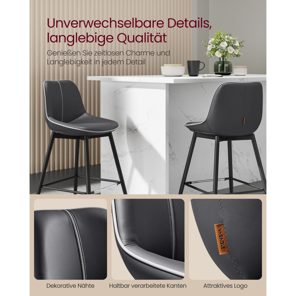 VASAGLE Bárszékek, 2 darabos szett, Konyhai székek, Ergonomikus háttámla, PU bevonat,