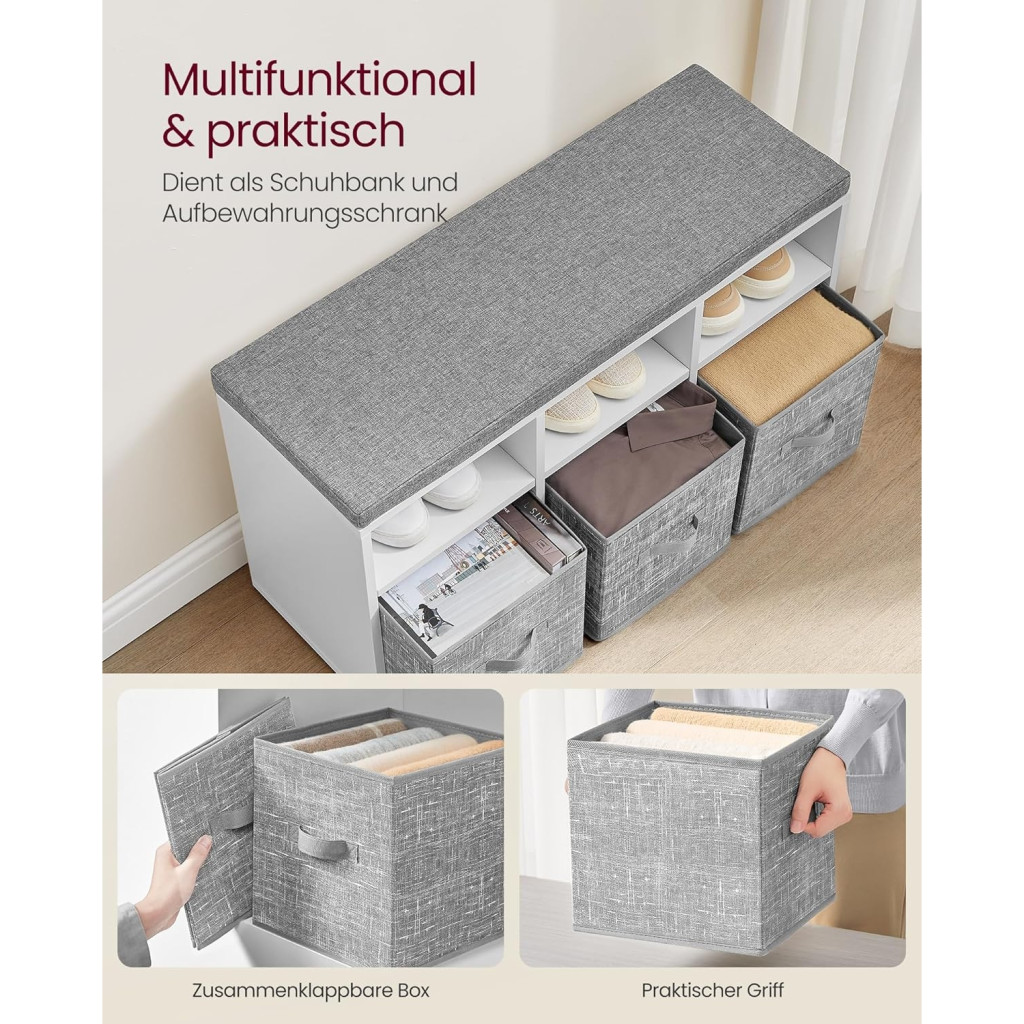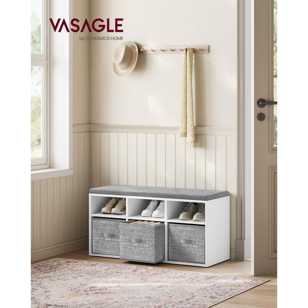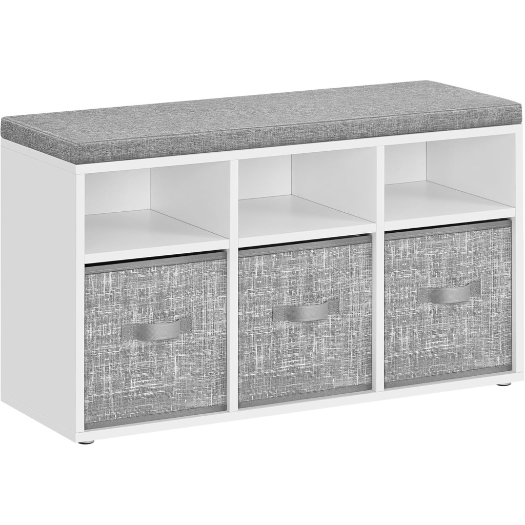 VASAGLE VASAGLE Cipőpad Ülőke Cipőrendező 6 Rekesszel és 3 Állítható Polccal 3 Tárolódoboz a Folyosóra, Nappaliba és Hálószobába Felhő Fehér Galamb Szürke LSB101W14