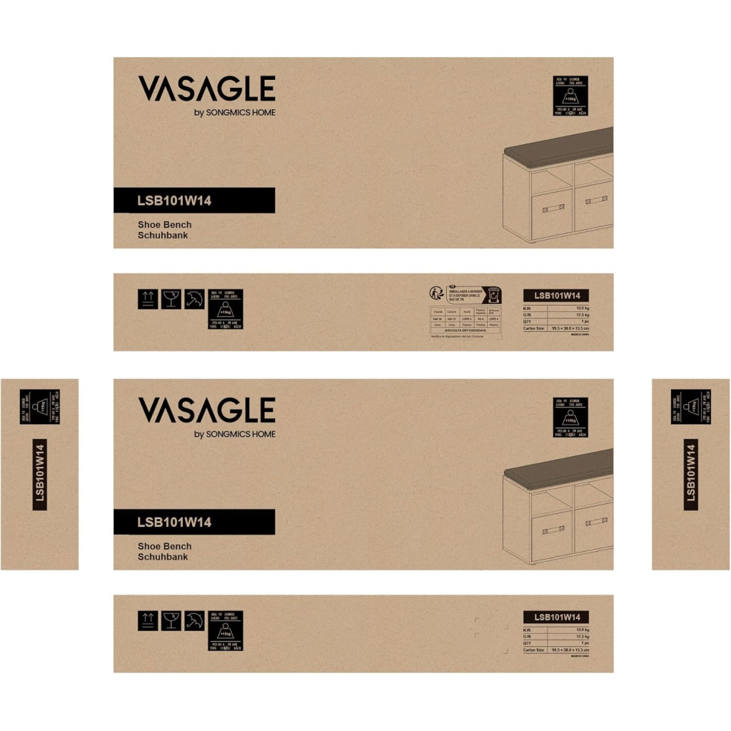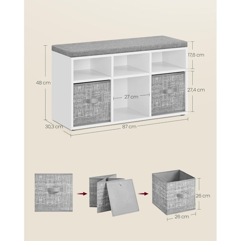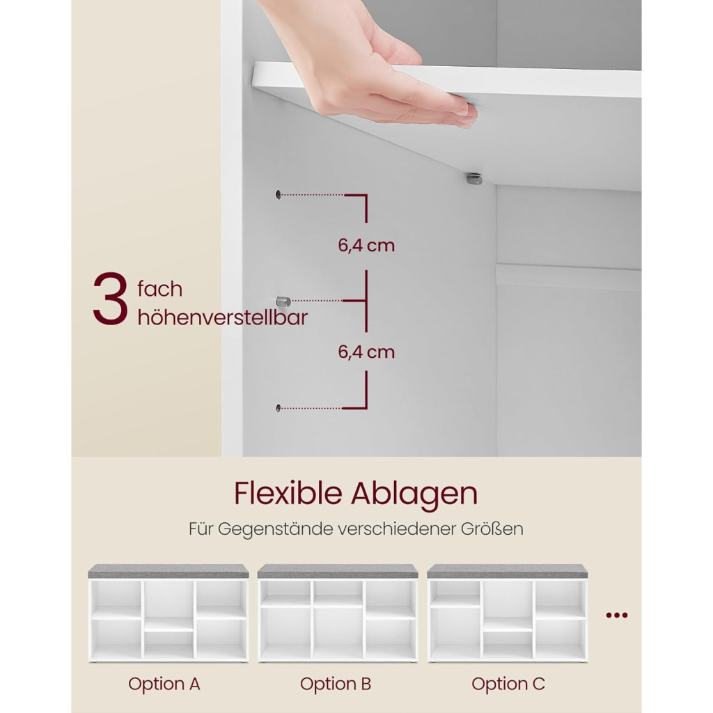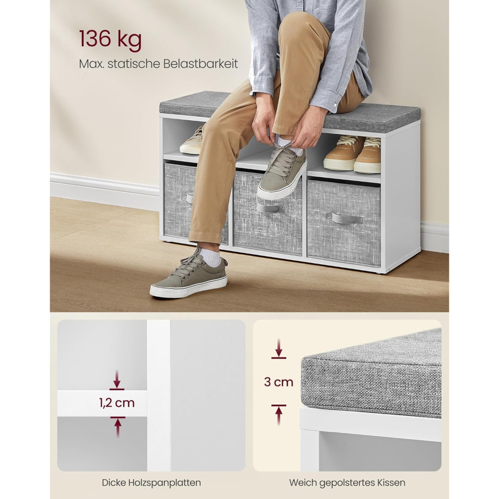VASAGLE VASAGLE Cipőpad Ülőke Cipőrendező 6 Rekesszel és 3 Állítható Polccal 3 Tárolódoboz a Folyosóra, Nappaliba és Hálószobába Felhő Fehér Galamb Szürke LSB101W14