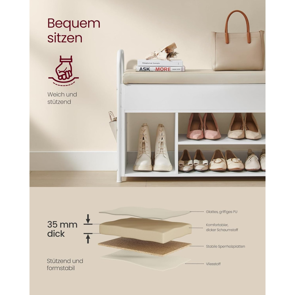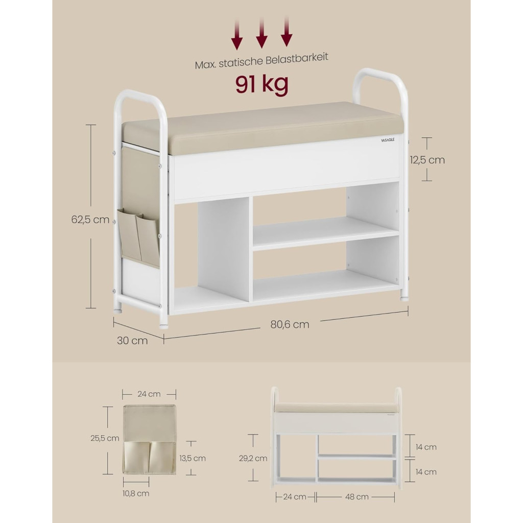 Cipőpad, előszoba cipőtartó bútor, tároló rekesszel, műbőr zsebek, kényelmes fogantyúk,
