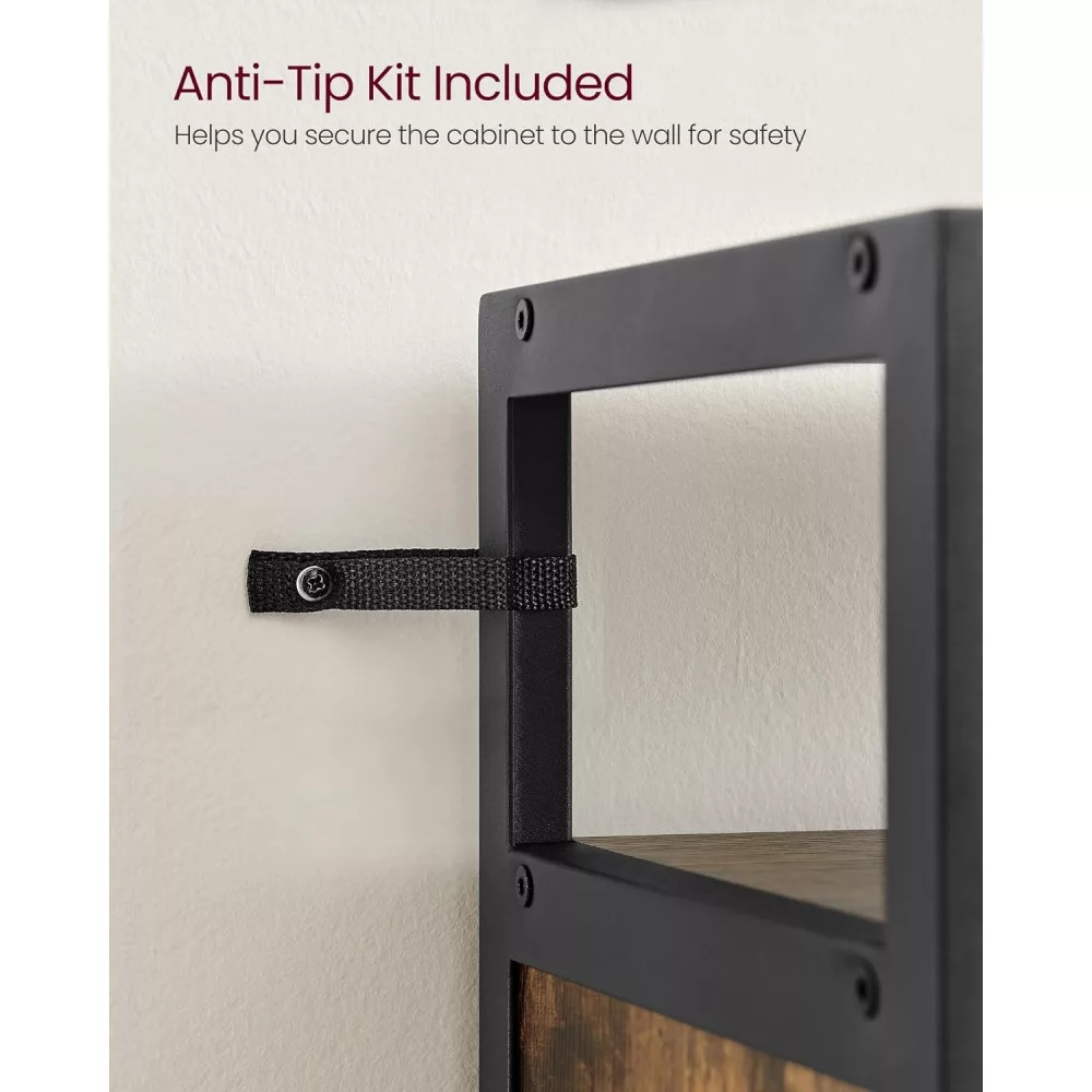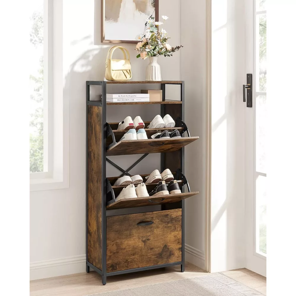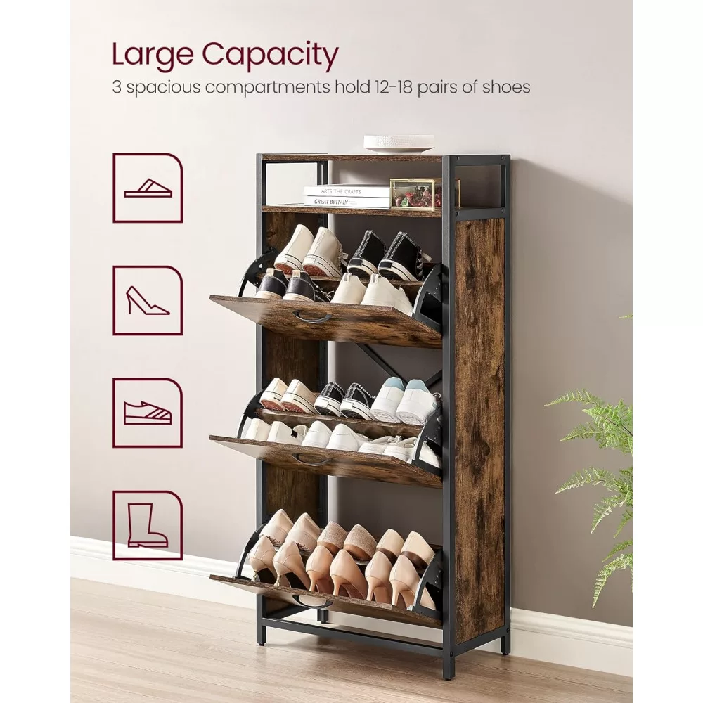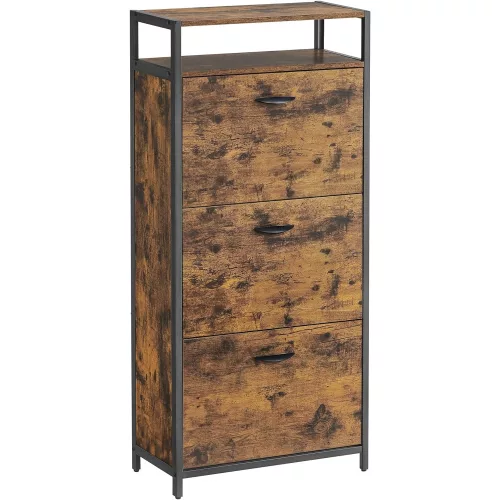 VASAGLE Cipős szekrény 3 ajtós 15-18 pár cipő tárolására, rusztikus barna 60x30x130cm