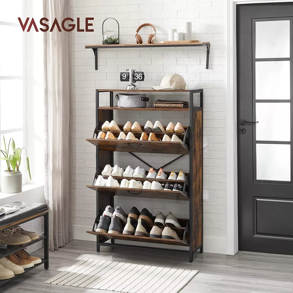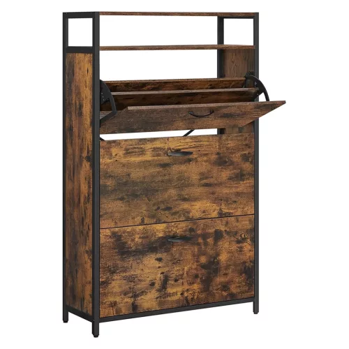 VASAGLE Cipős szekrény 3 lehajtható ajtóval 15-24 pár cipő tárolására, rusztikus barna 80x30x131cm