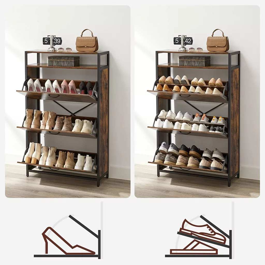 VASAGLE LBS802B01 cipősszekrény 3 lehajtható ajtóval, cipőtartó az előszobába,