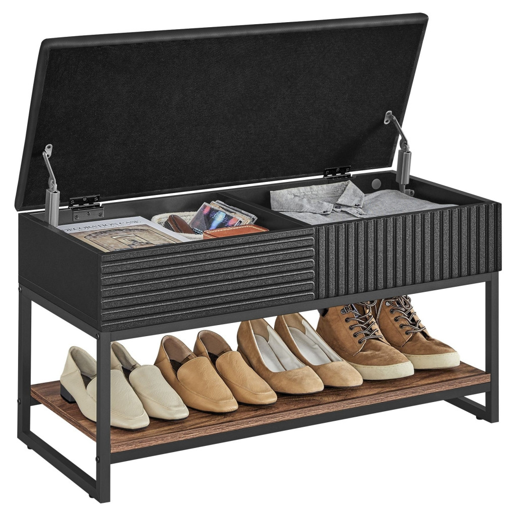 Nagy kapacitás: Ez a cipőtartó pad, melynek mérete 31.5"M x 14.17”Sz x 18.5"M, egy 5" mély tároló rekeszt tartalmaz az ülőke alatt, lehetővé téve kesztyűk, könyvek és egyebek elrejtését. Az alsó polc akár 4 pár cipőt vagy sportfelszerelést is tárolhat.
