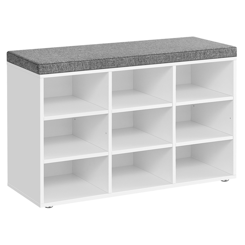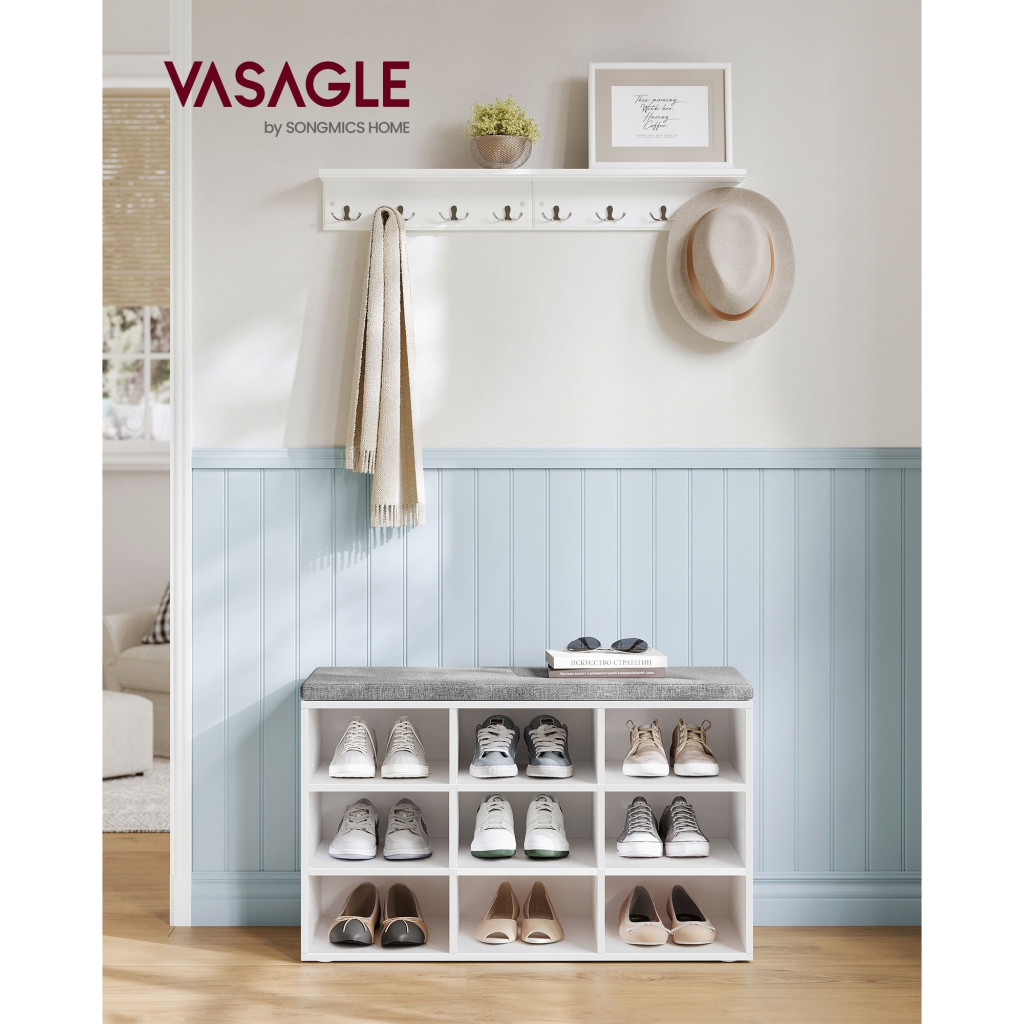 VASAGLE cipőspad párnával, tárolópad párnázott üléssel, előszobapad 9 rekesszel,