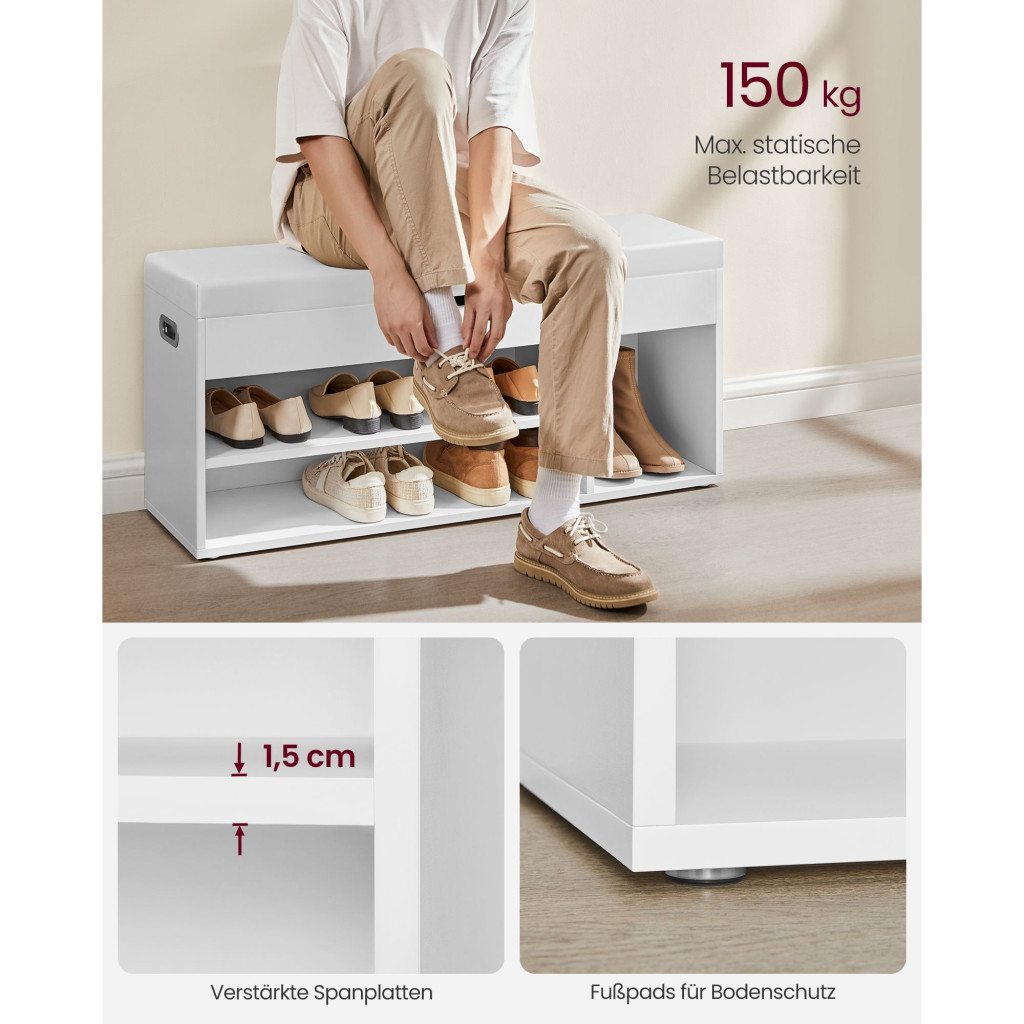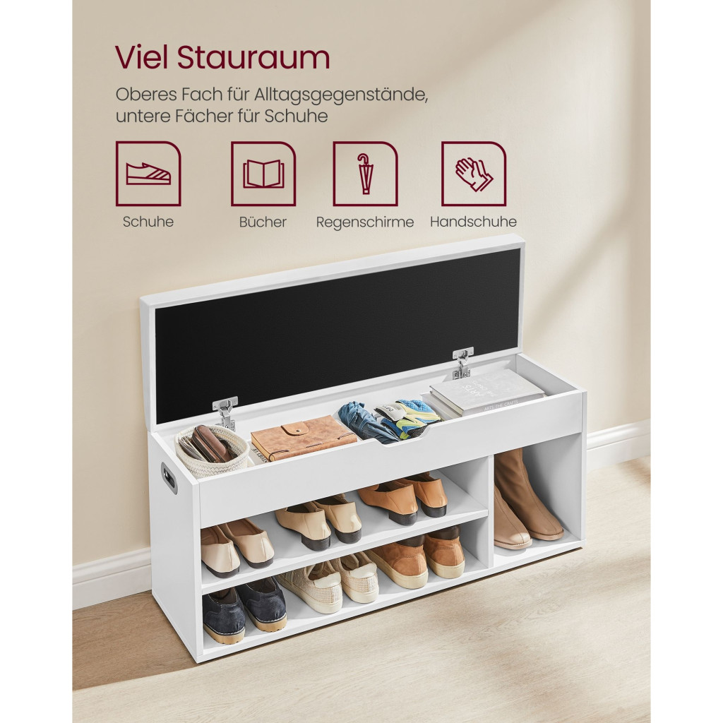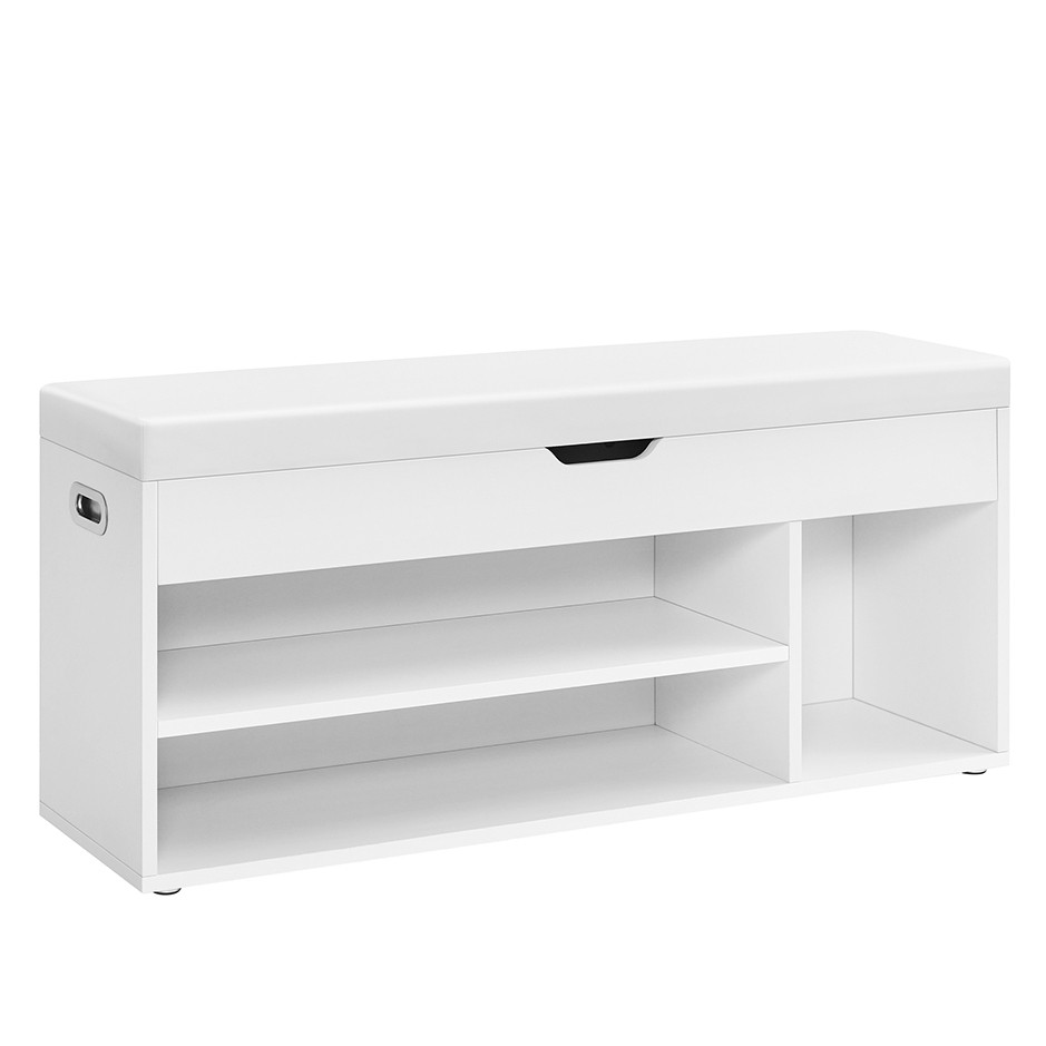 VASAGLE Cipőtároló pad, párnázott ülőfelülettel, felnyitható, fehér 100x30x44cm