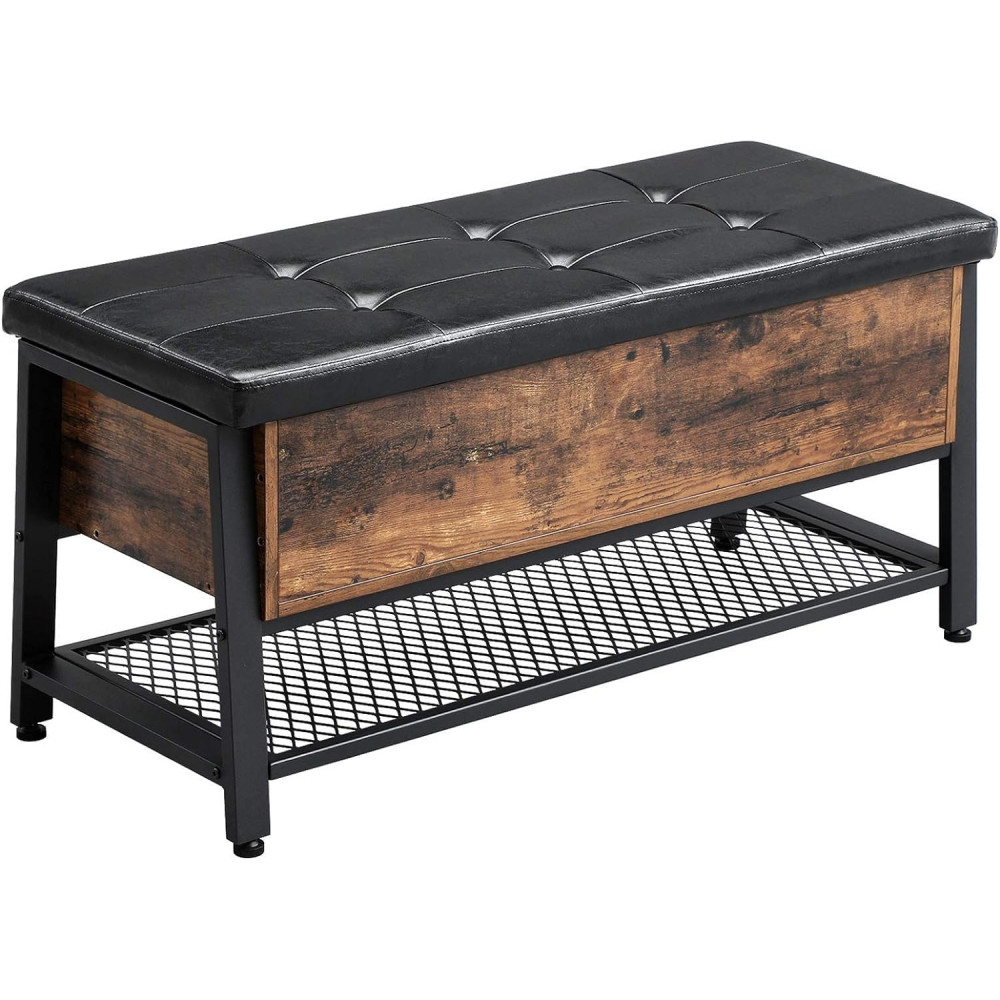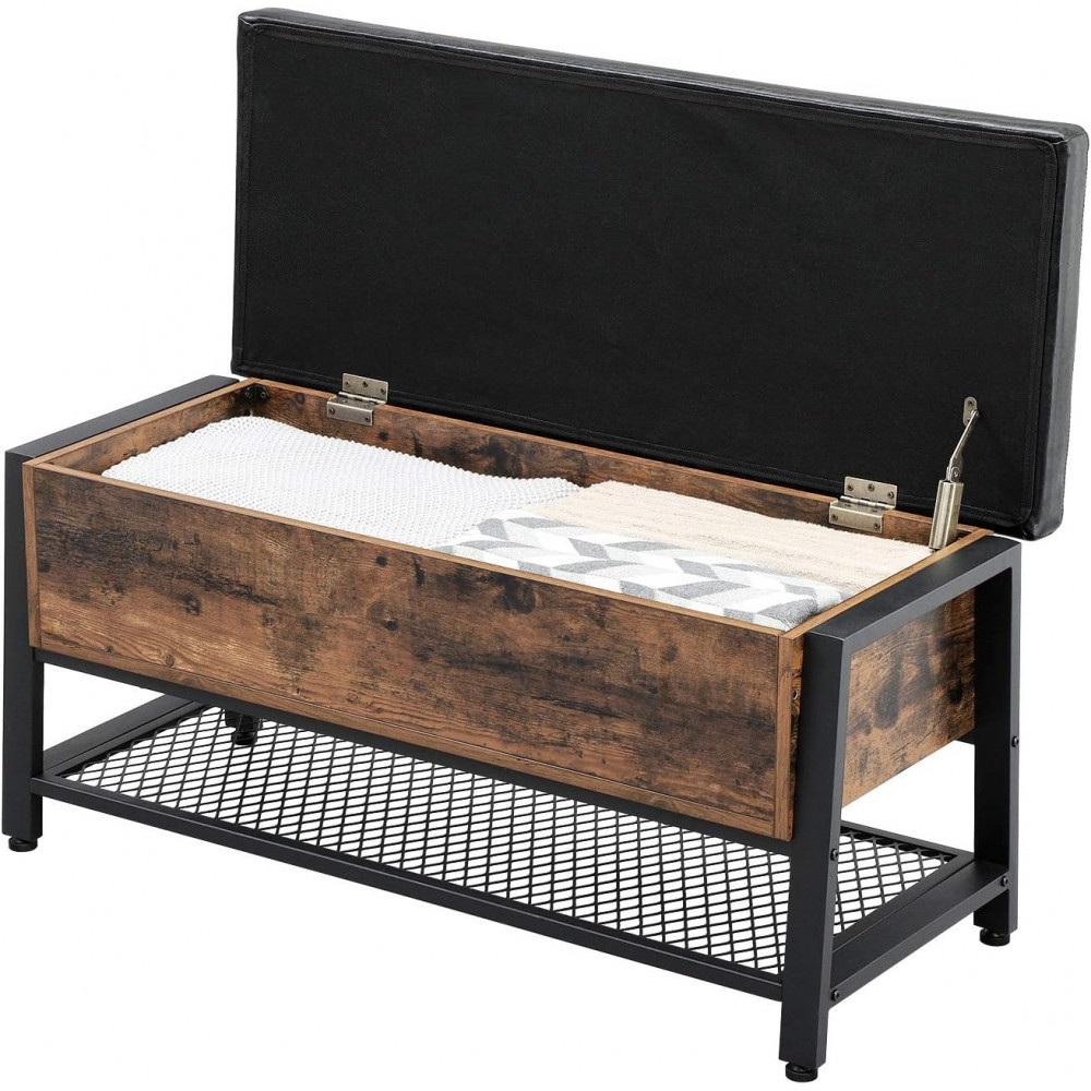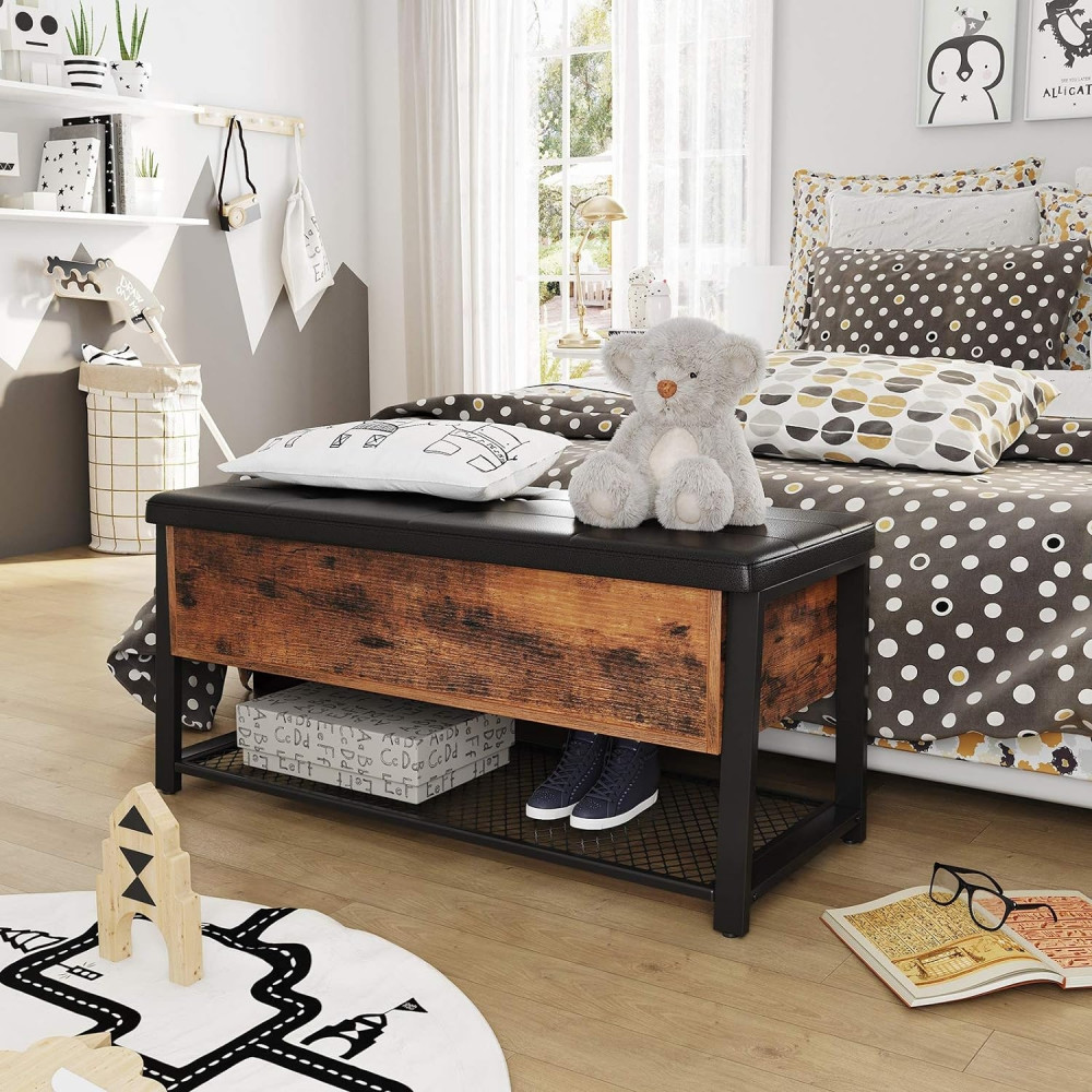 VASAGLE Ipari Cipőtároló Pad, Ágyvégi Hokedli Párnázott Ülőkével és Cipőpolccal,