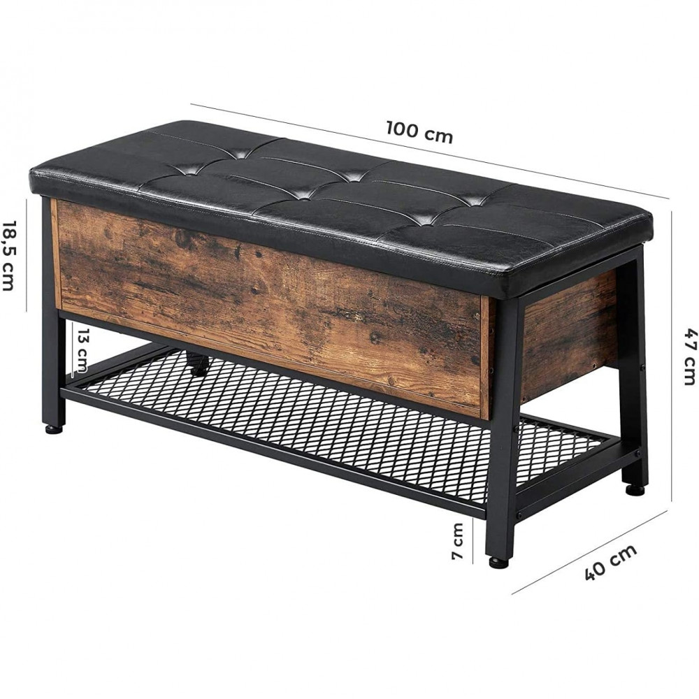 VASAGLE Cipőtároló pad, párnázott ülőfelülettel, rusztikus barna 100x40x47cm