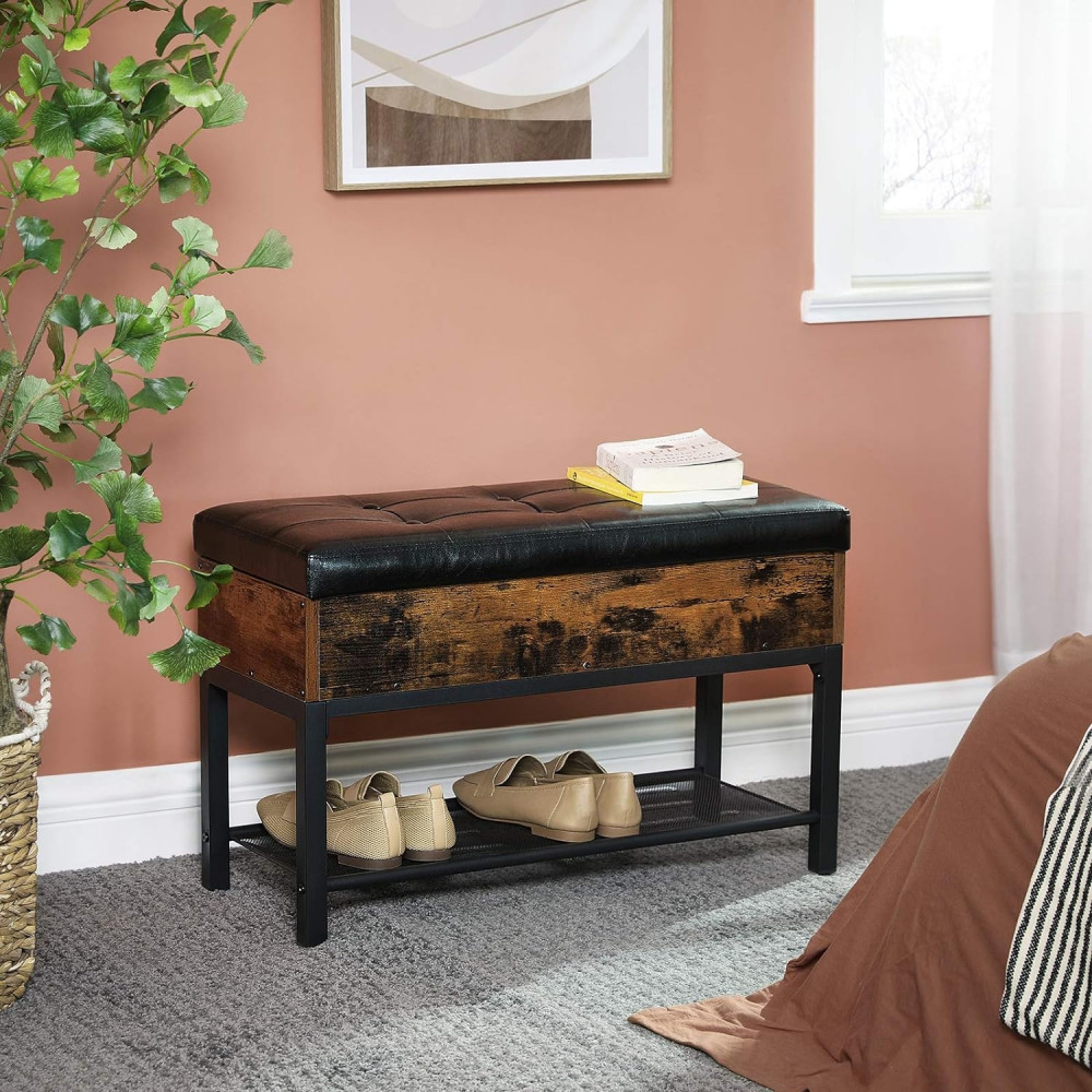VASAGLE Cipőtároló pad, párnázott ülőfelülettel, rusztikus barna 70x30x45cm