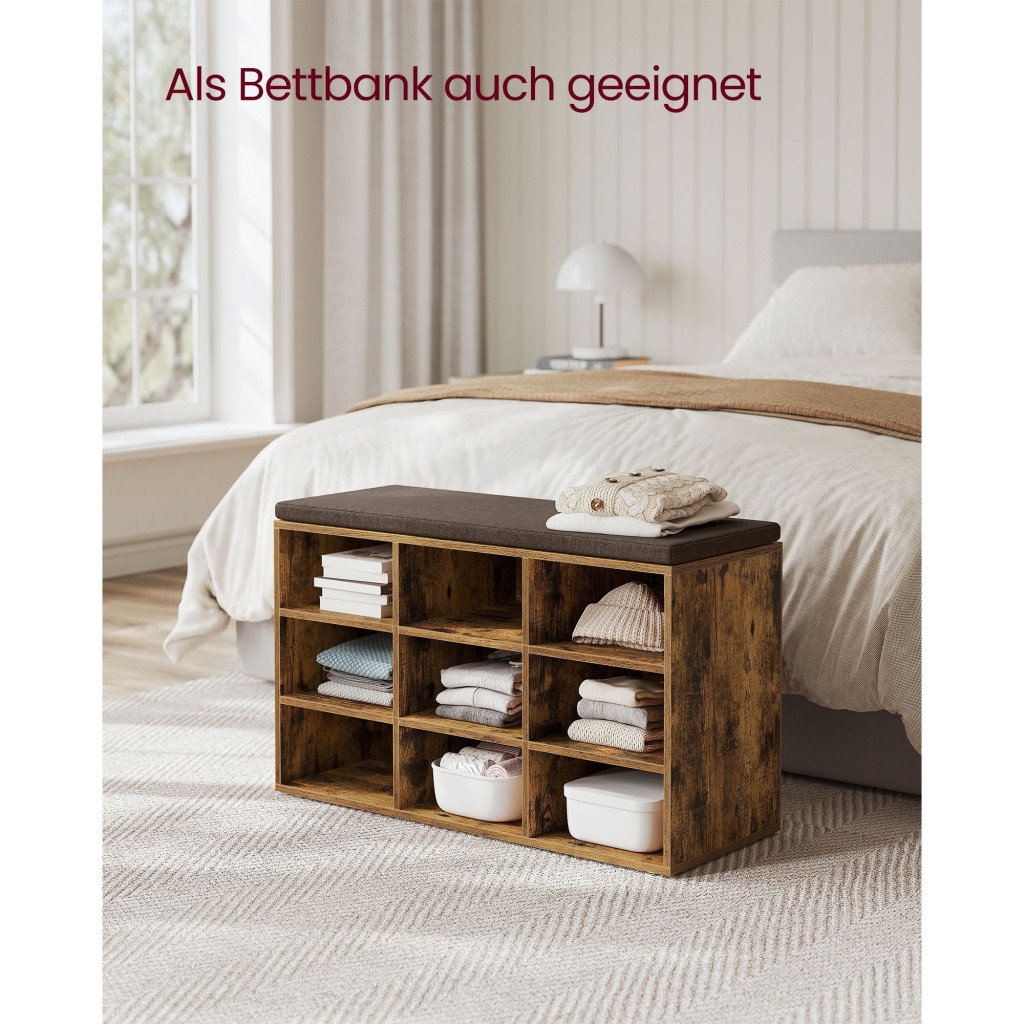 VASAGLE Cipőpad, Tárolópad párnázott üléssel, párnával, 9 rekesszel, állítható