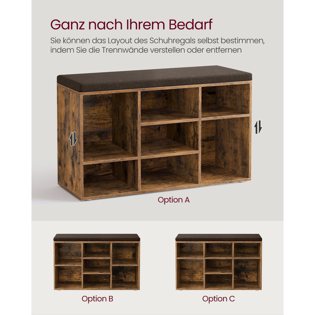 VASAGLE Cipőtároló pad, párnázott ülőfelülettel, rusztikus barna 78x30x48cm