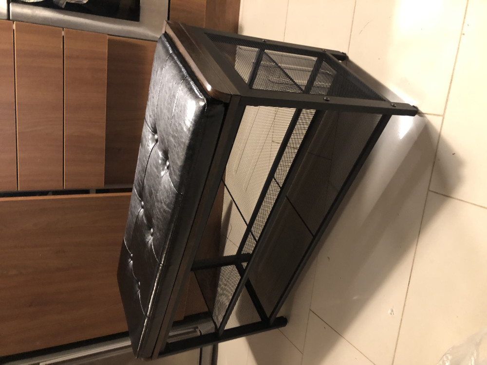 Kockáztass egy második pillantást: Fényes fekete műbőr, 2 sűrű szövésű acélhálós polc a cipőknek, mindezt egy robusztus fa hatású vintage kivitel töri meg - valóban sok felfedeznivaló van ezen a padon/cipőpadon.