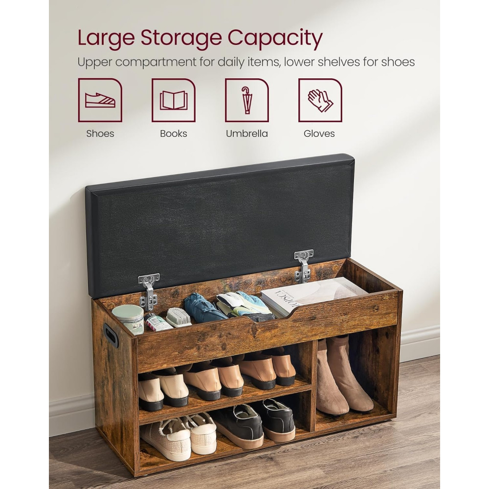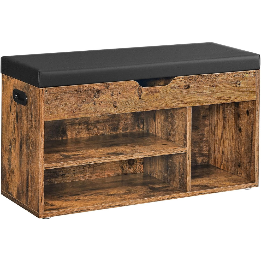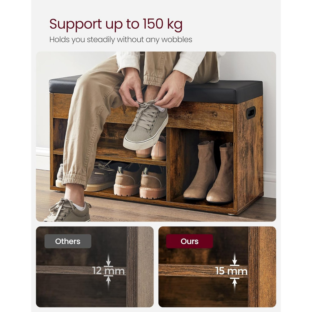 VASAGLE Cipőtároló pad, párnázott ülőfelülettel, rusztikus barna 80x44x30cm