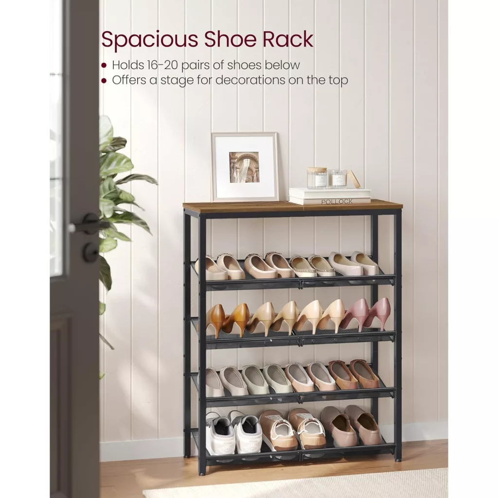 VASAGLE Cipőtartó, 5 szintes cipőtároló polcokkal és nagy felső résszel,