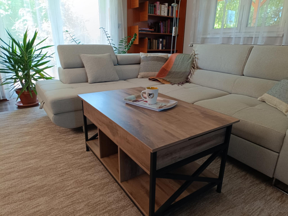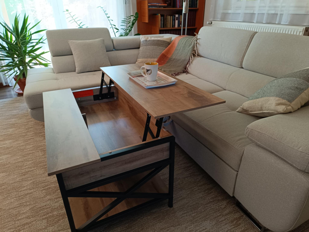 Emelhető Tető: Emelje fel ennek a dohányzóasztalnak a lapját előre. Így otthonról kényelmesen dolgozhat, böngészhet az interneten, élvezheti a finom ételeket vagy kézműveskedhet, miközben a kanapén ül