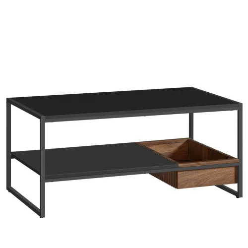 Dohányzóasztal, fekete, diófa rekesszel 100x55x45 cm