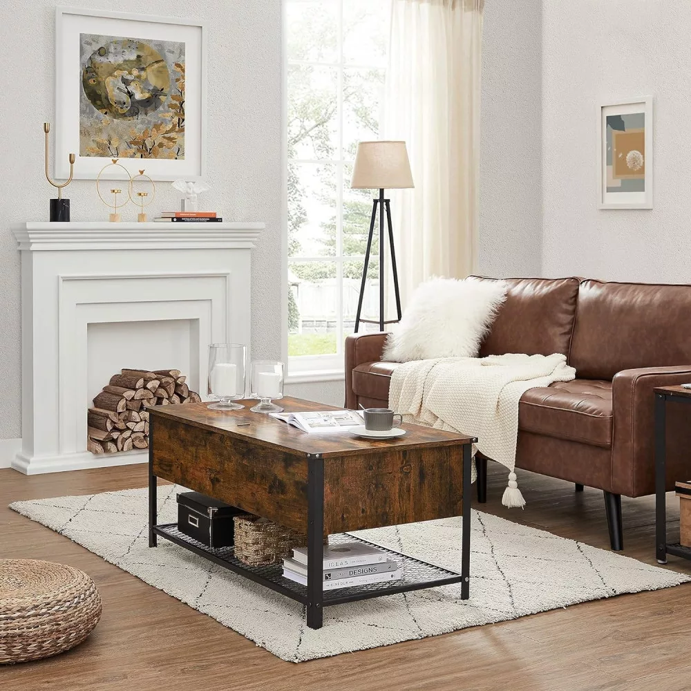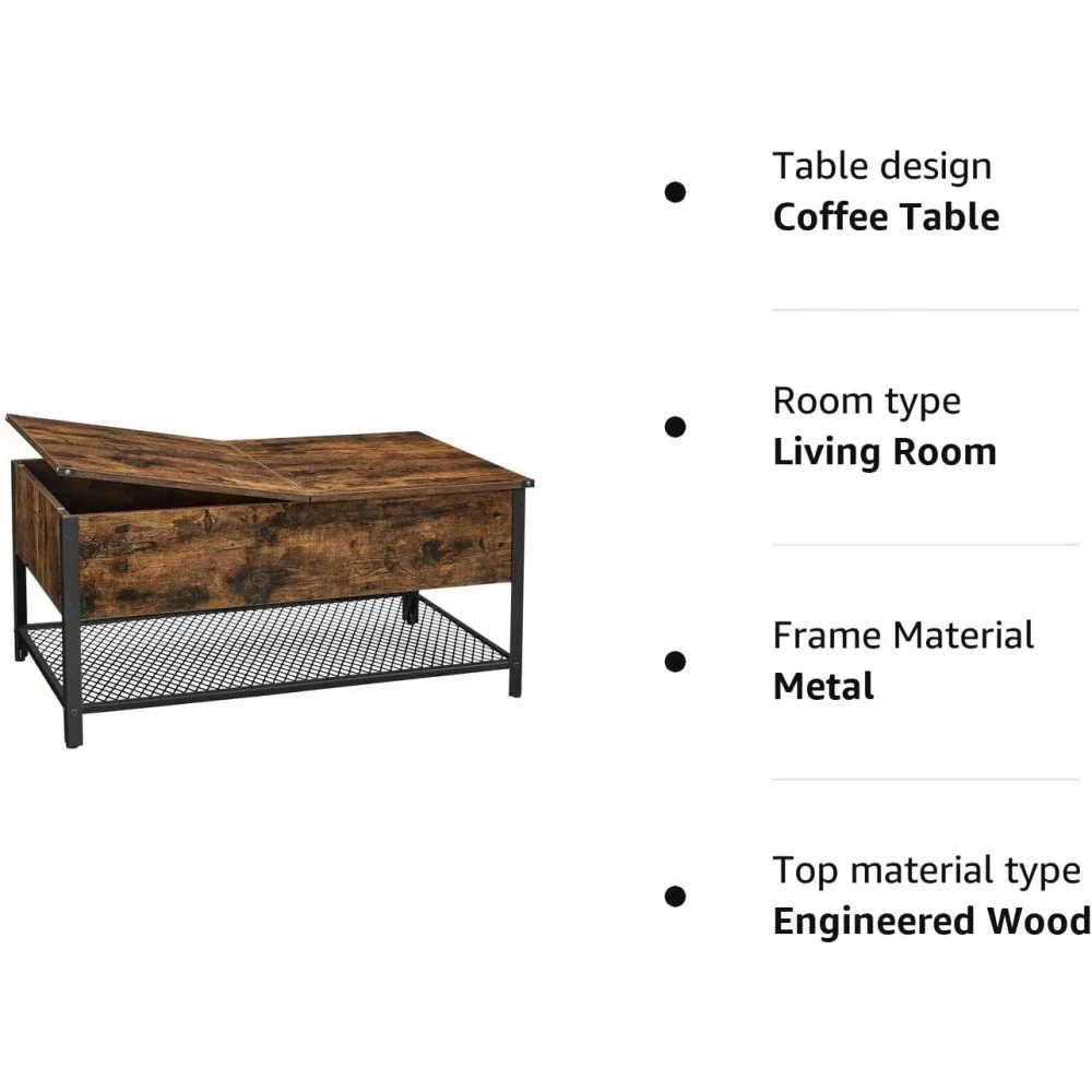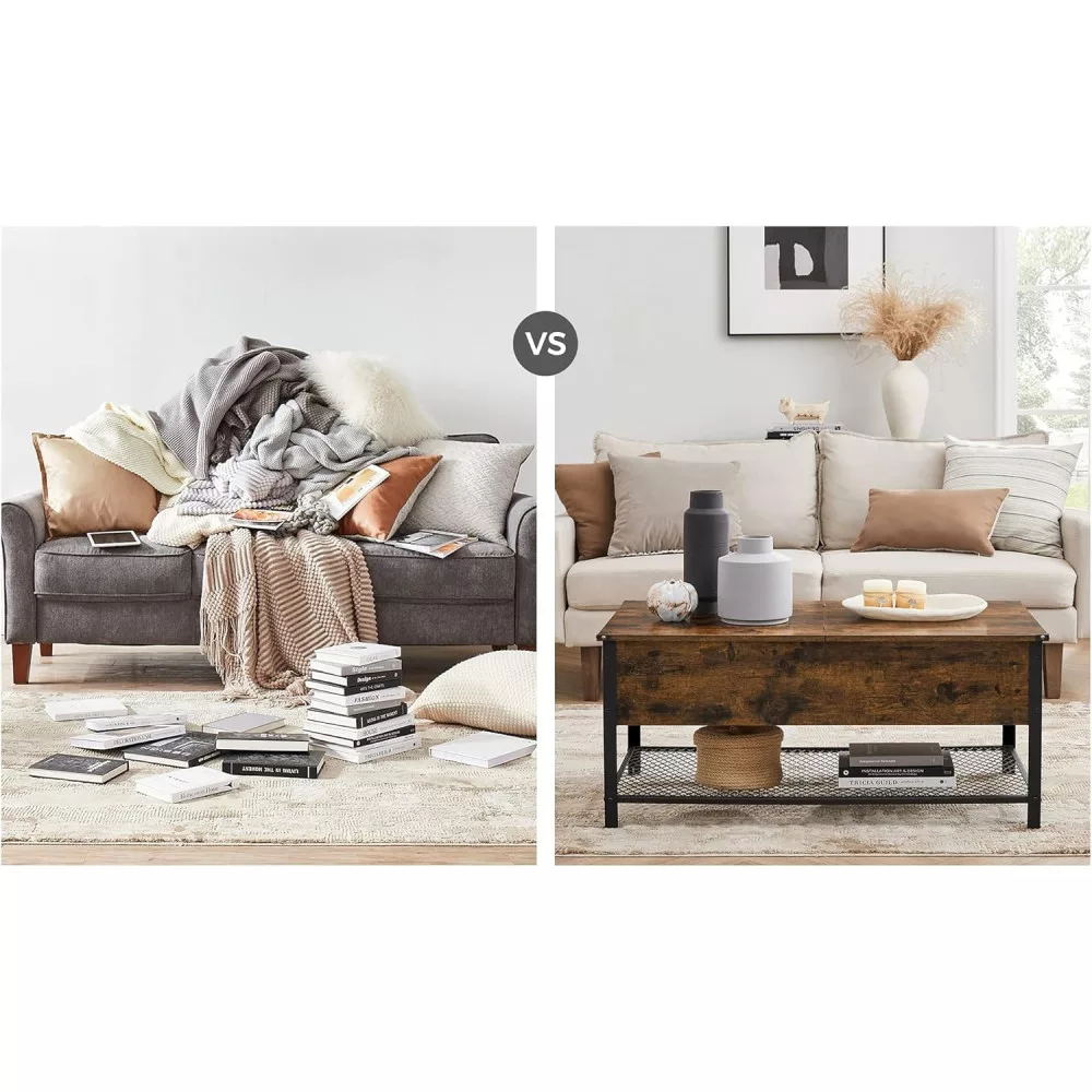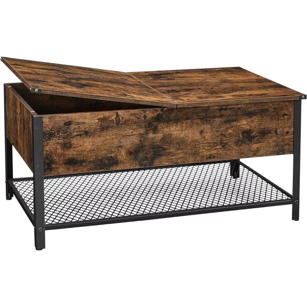 VASAGLE Dohányzóasztal újságtartóval felnyitható tárolóval, rusztikus barna 100x55x47cm