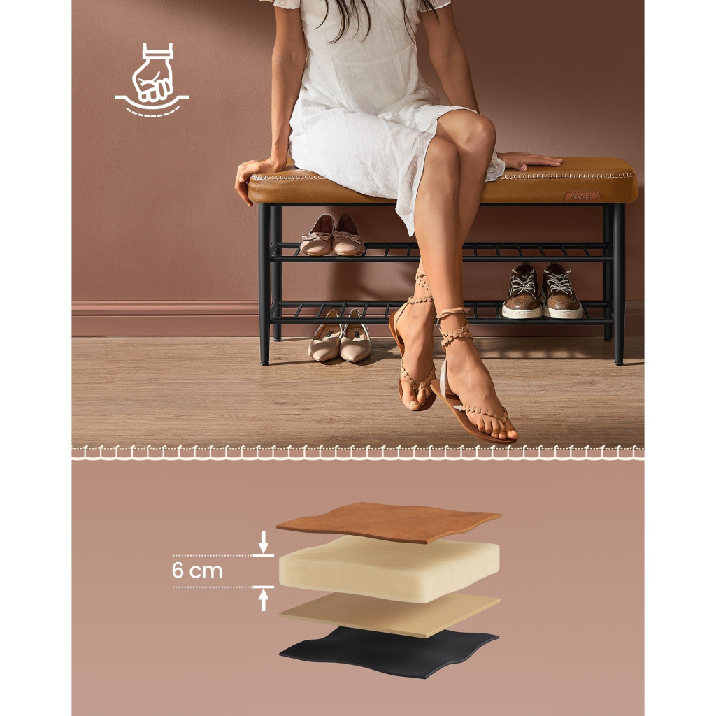 VASAGLE EKHO Kollekció – Cipőpad, Ülőke, Előszoba, Műbőr, Díszvarrás, Mid-Century Modern