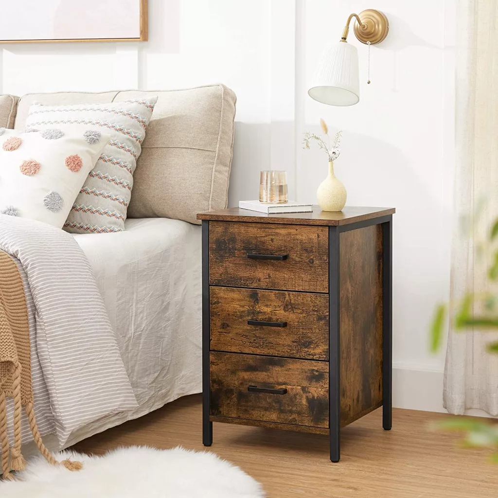 VASAGLE Éjjeli szekrény, 3 fiókkal, rusztikus barna 40x40x60cm
