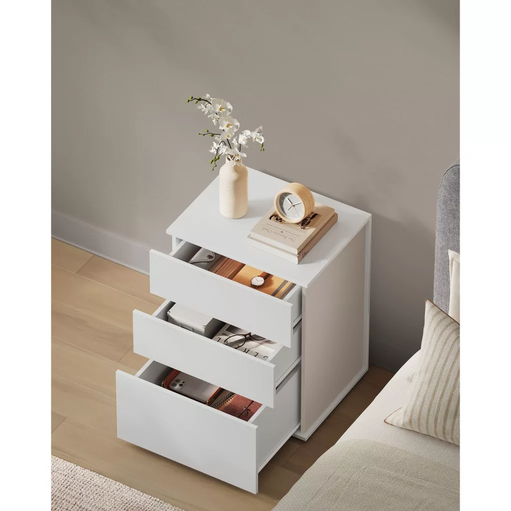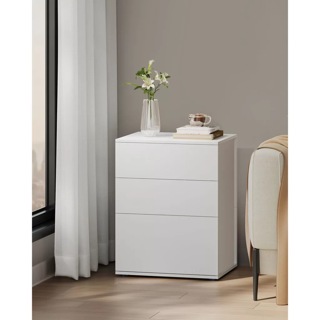 VASAGLE Szupergyors, szerszám nélküli összeszerelésű éjjeliszekrény, 3 tárolófiókkal,