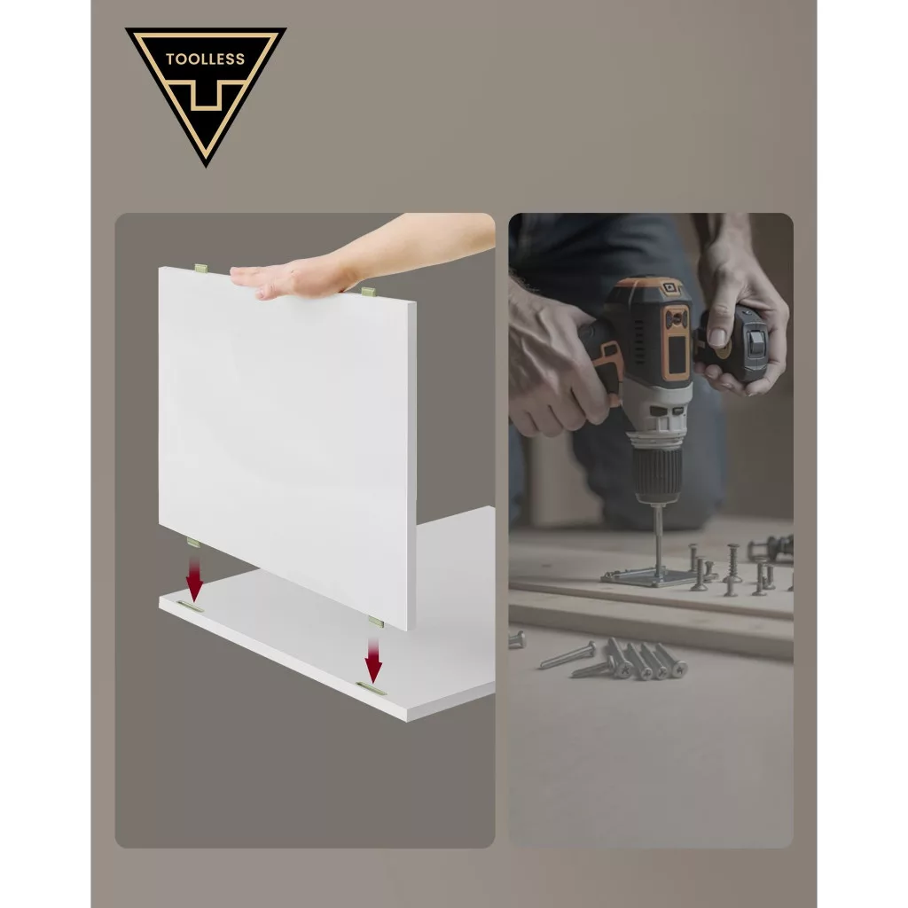 Szupergyors, szerszám nélküli összeszerelés: Állítsa össze ezt az éjjeliszekrényt körülbelül 10 perc alatt – szerszámok nélkül. A 2024-es GOOD DESIGN AWARD-dal elismert csatlakozók lehetővé teszik, hogy a panelek egyszerűen egymásba pattanjanak. Nincs több unalmas összeszerelés és megszámlálhatatlan rögzítőelem!