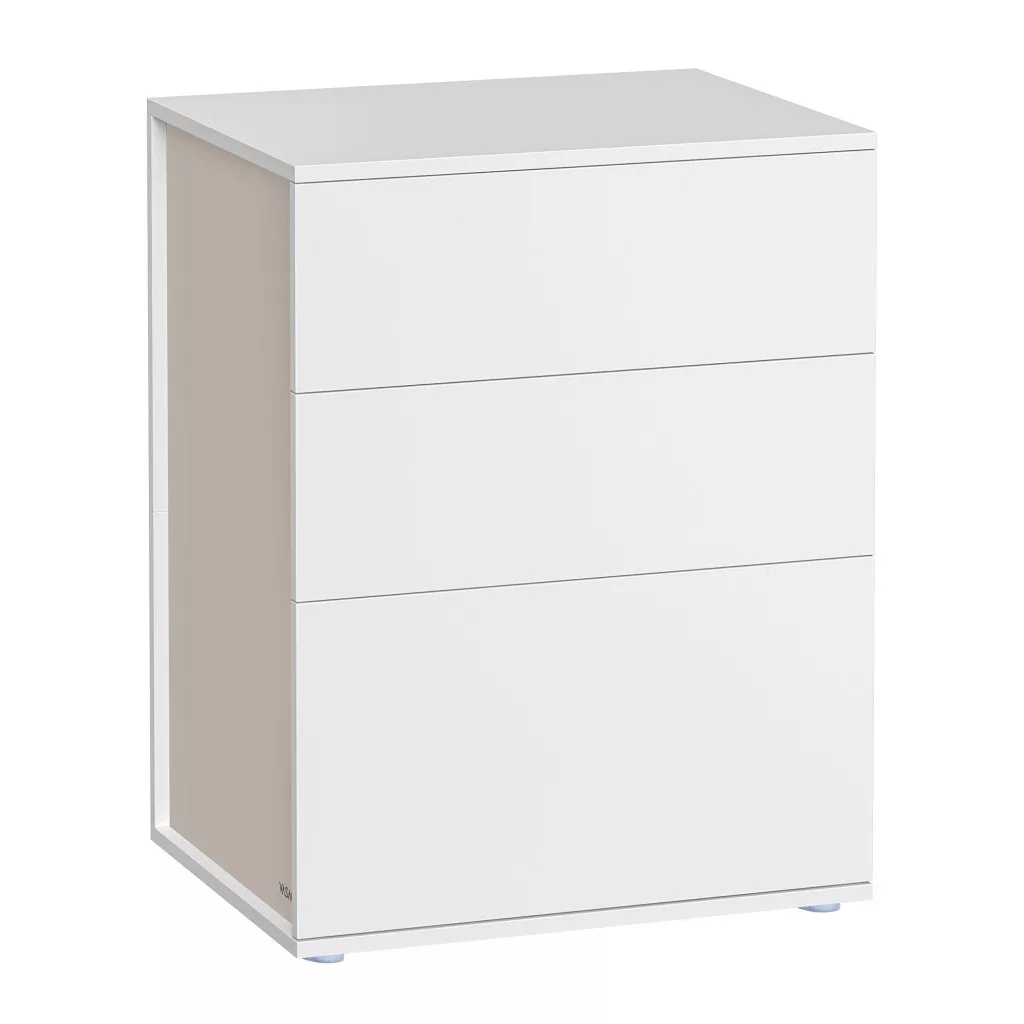 Éjjeliszekrény, 3 fiókkal, fehér és bézs
