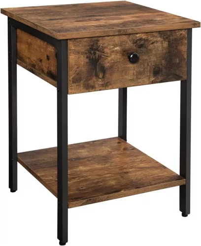 VASAGLE Éjjeliszekrény fiókkal és polccal, rusztikus barna 40x40x50cm