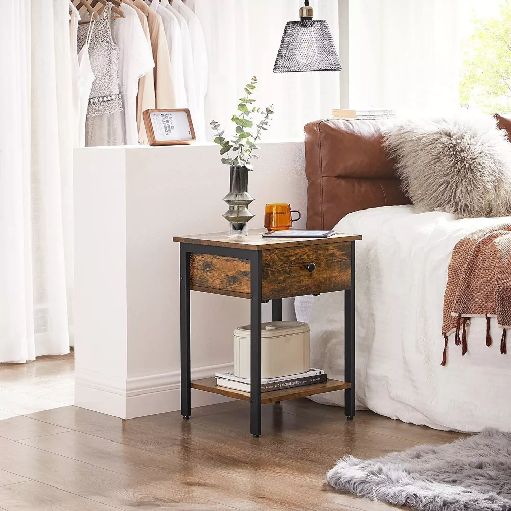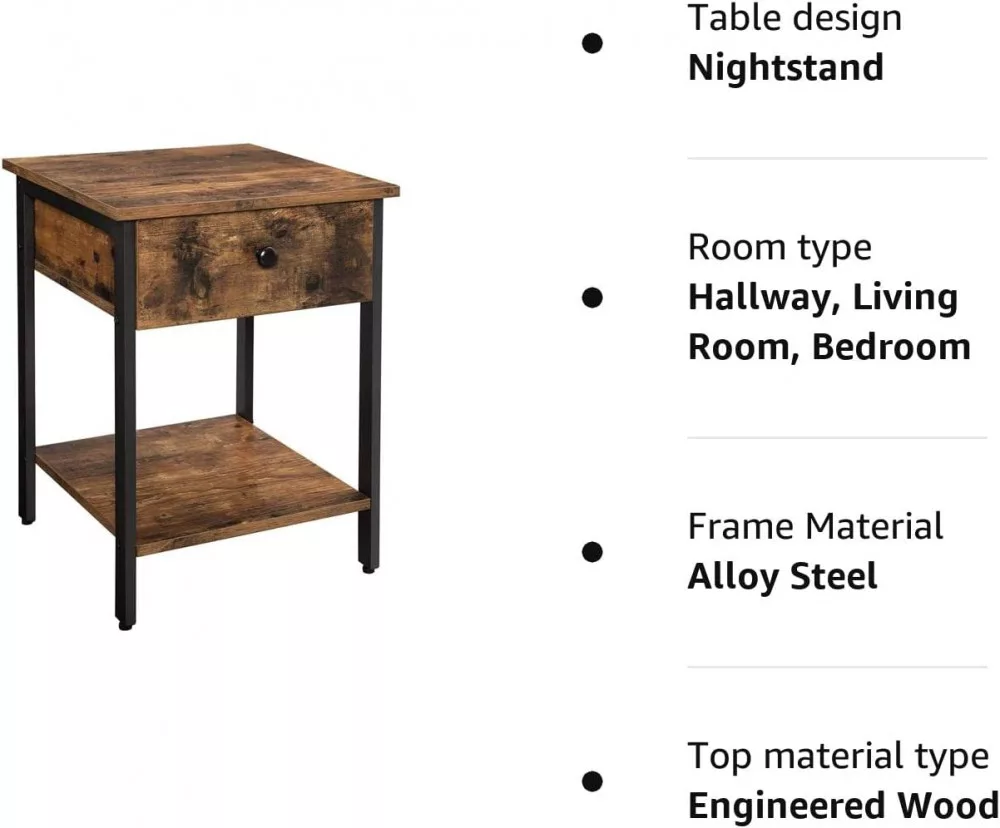 VASAGLE Éjjeliszekrény, Éjjeli asztal, Oldalsó asztal fiókkal és polccal, Vége asztal,