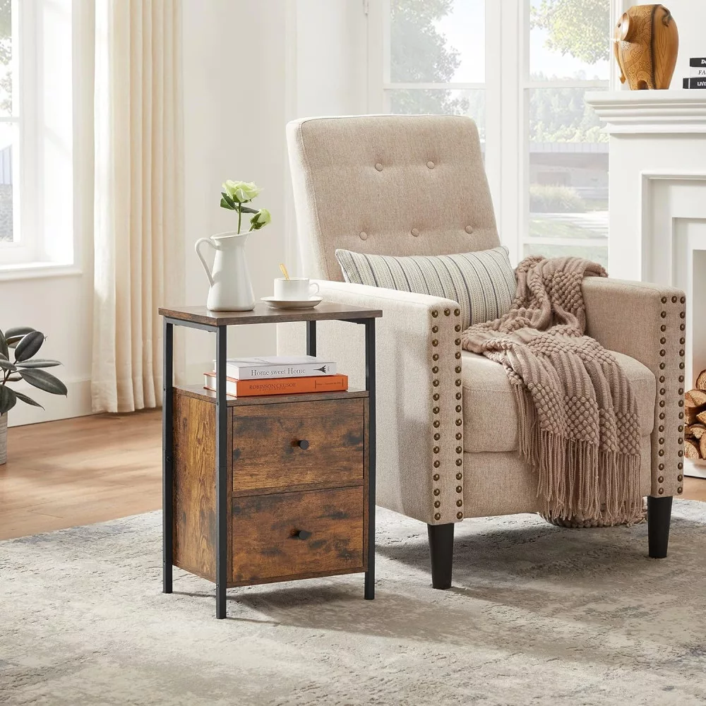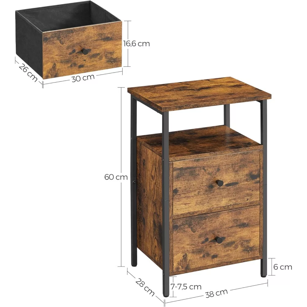 VASAGLE Éjjeliszekrény két fiókkal, rusztikus barna 38x28x60cm