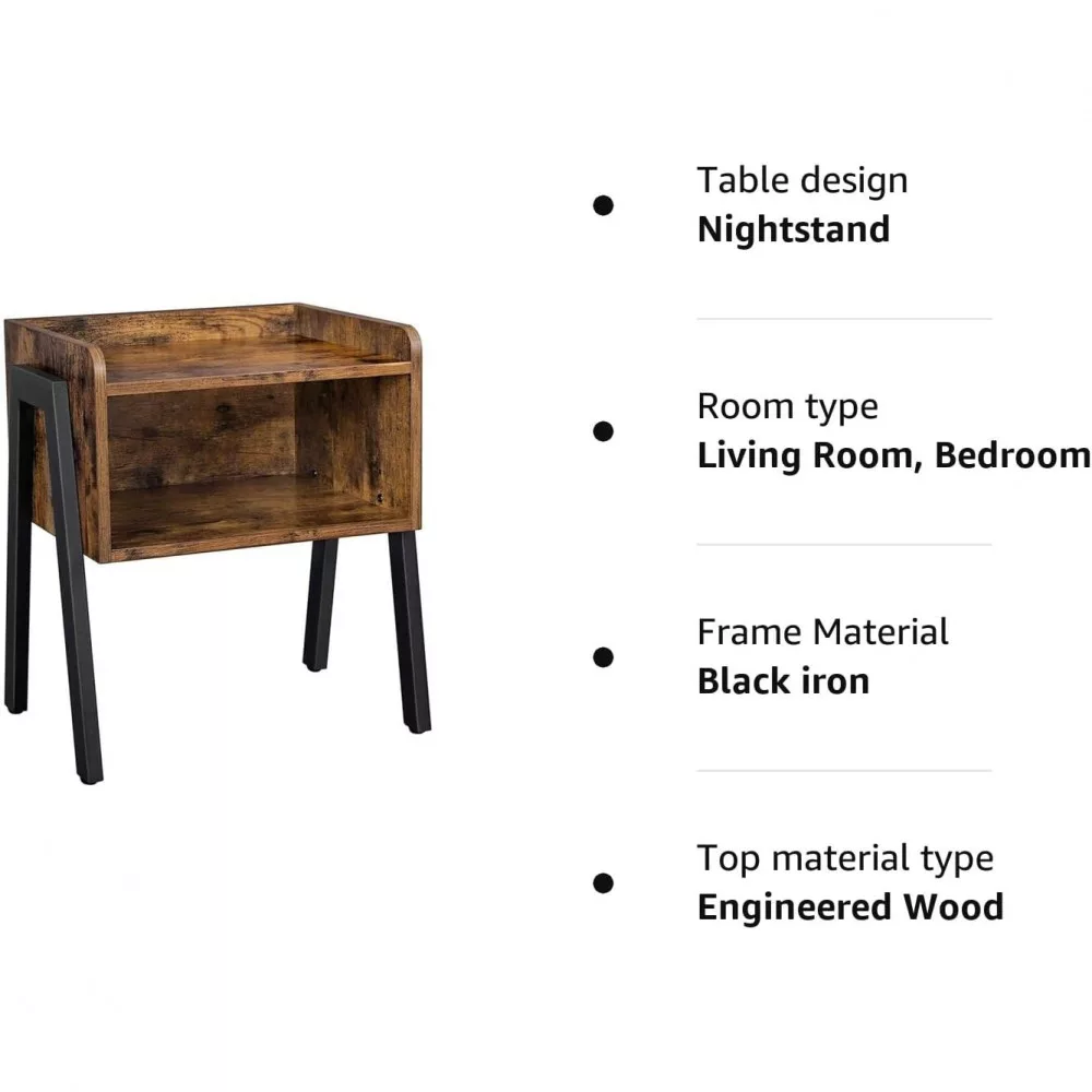 Stílusos és Kiváló Minőség: Fekete acéllábakkal és rusztikus barna forgácslappal megerősítve, ez az éjjeliszekrény ipari bájt kölcsönöz hálószobájának, miközben szilárd szerkezetet hoz létre, amely maximálisan 20 kg terhelést bír el.
