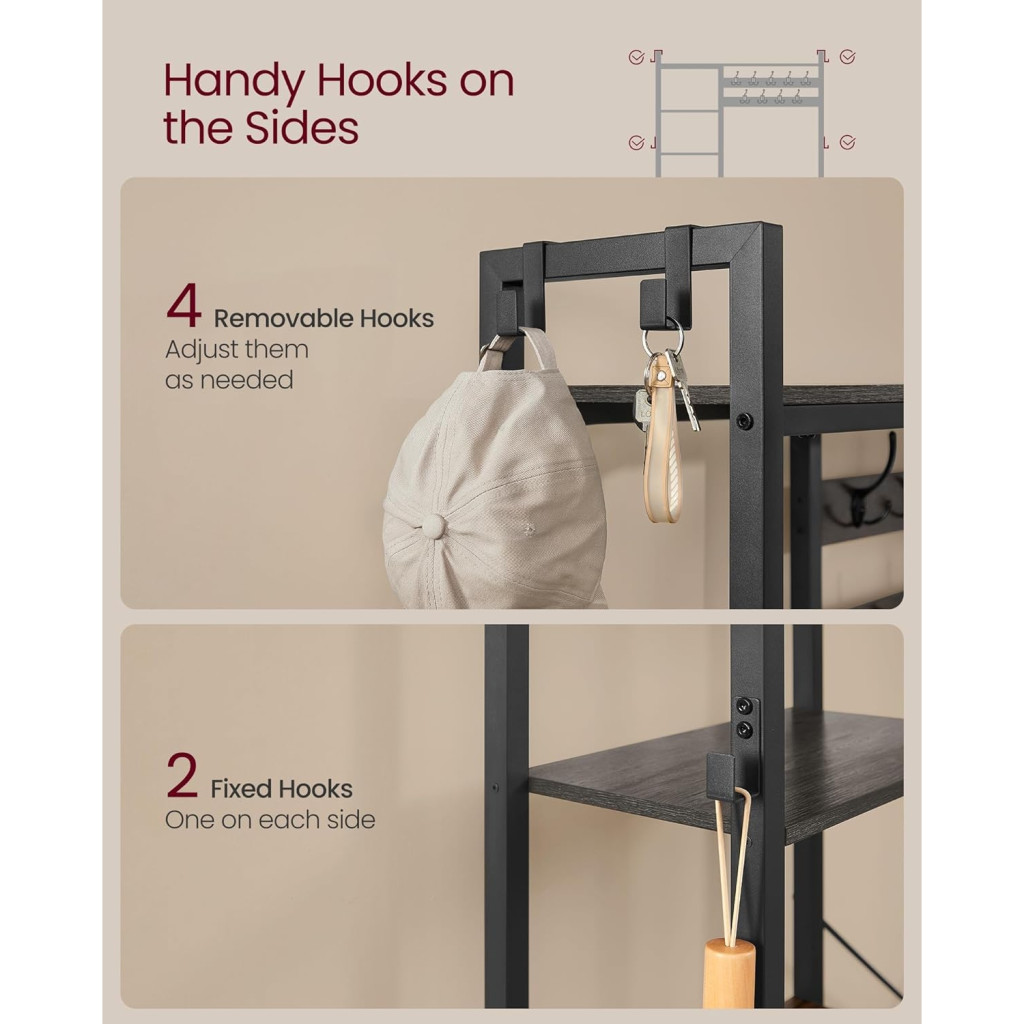 VASAGLE előszobafal paddal és cipőtárolóval, előszobai kabáttartó cipőpaddal, 5