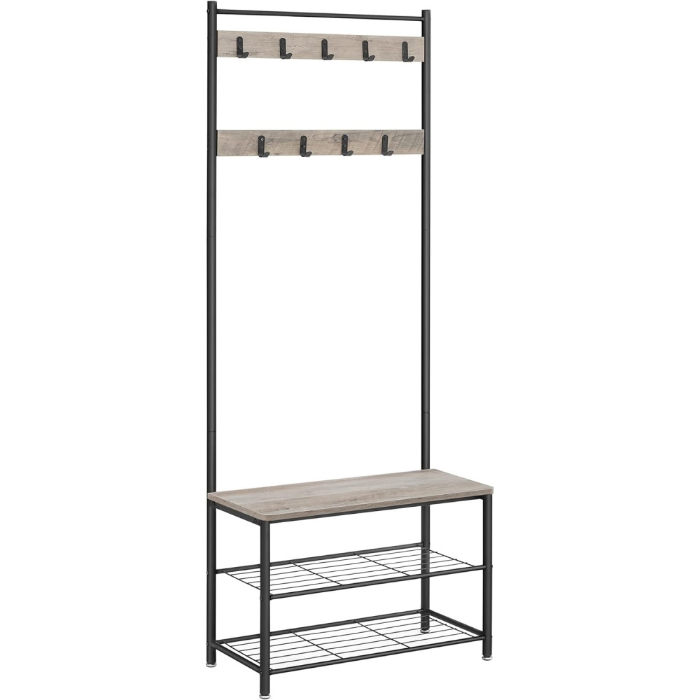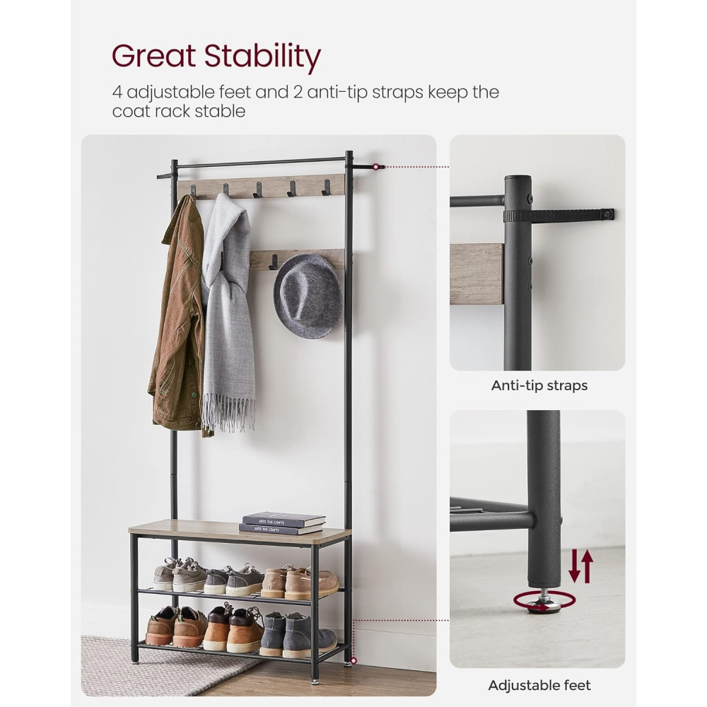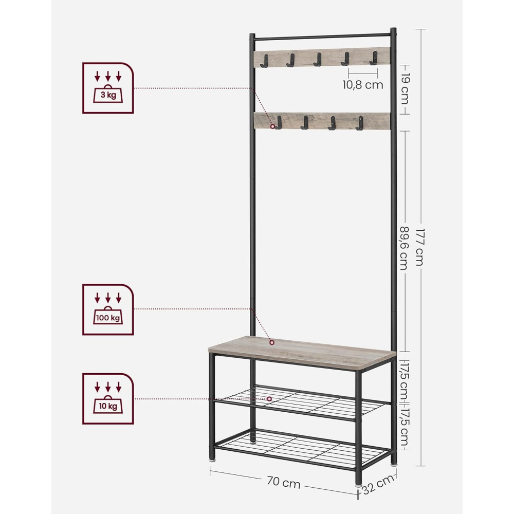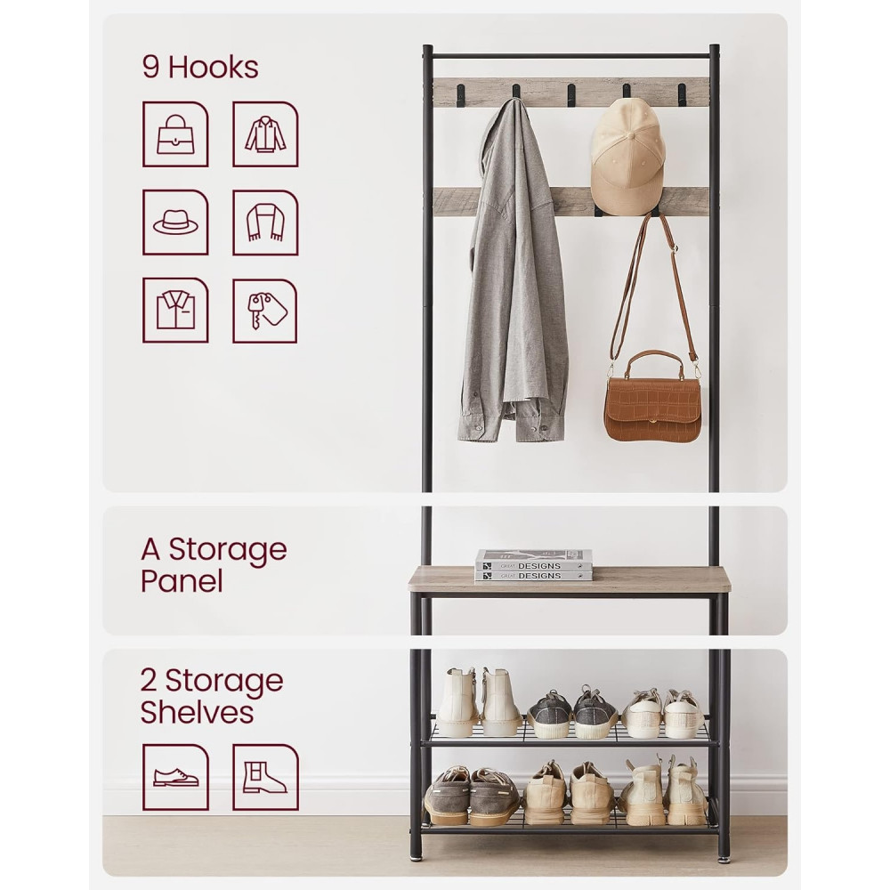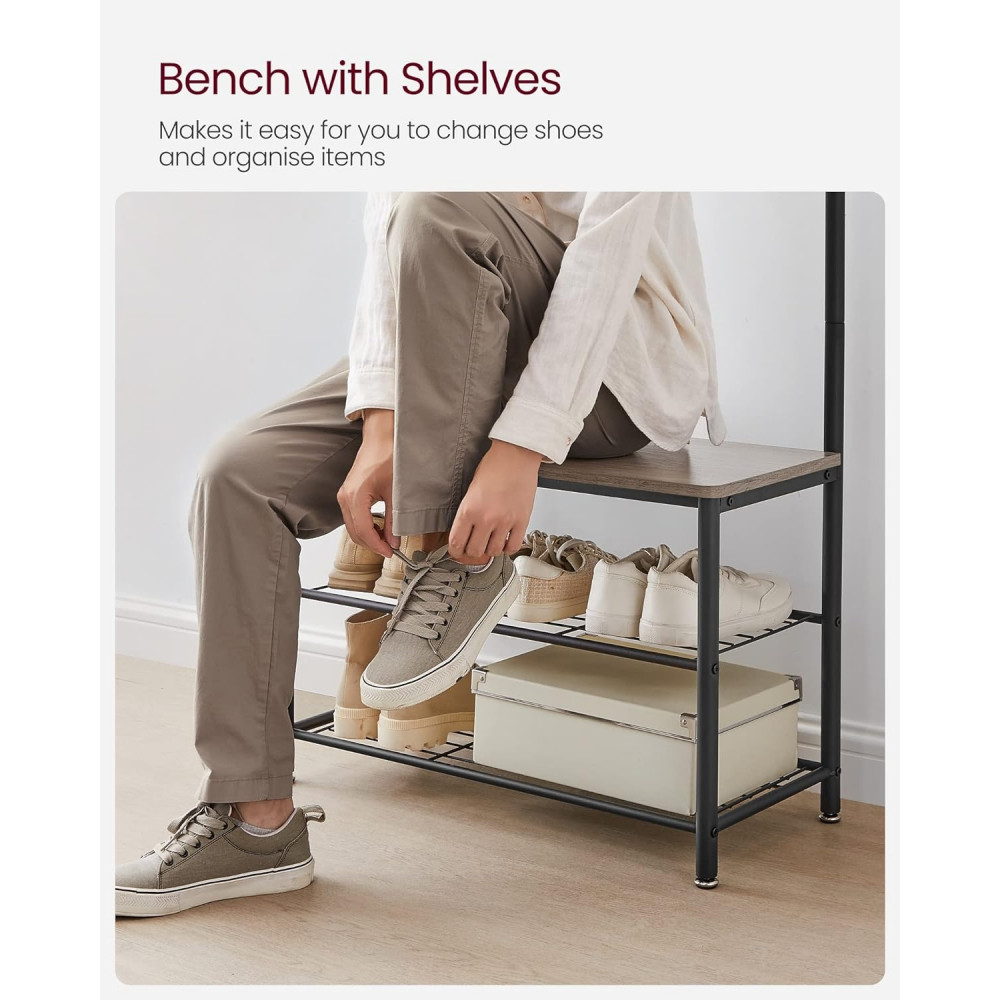 VASAGLE Kabátakasztó, Kabátállvány cipőtároló padlóval, Folyosófa cipőtartóval, 3 az