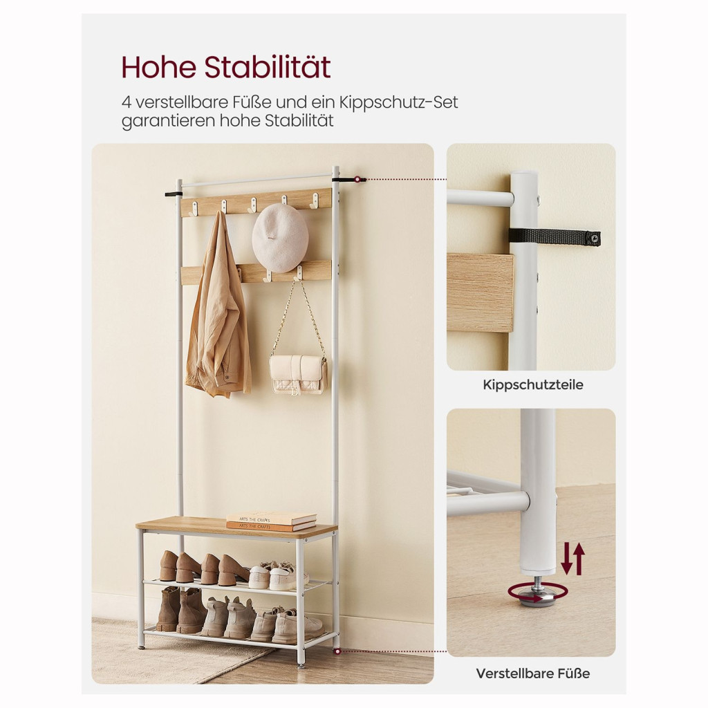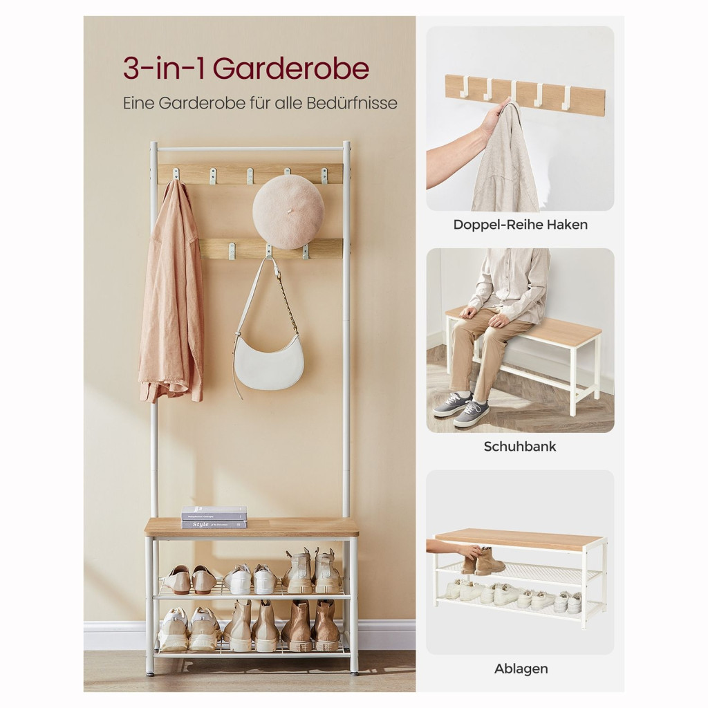 VASAGLE Ruhafogas, Kabátállvány cipőtároló paddal, Előszobafal cipőtartóval, 3 az