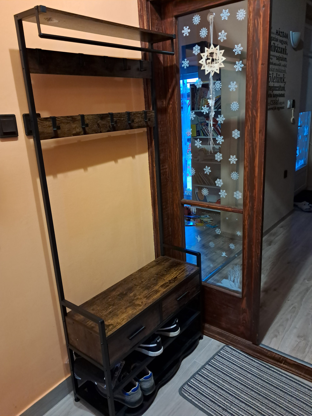 Elegendő hely: Ez az előszobabútor 10 levehető akasztóval rendelkezik kabátok, kalapok, sálak és táskák felakasztásához. Az alsó 2 polc pedig 8 pár cipő tárolására alkalmas