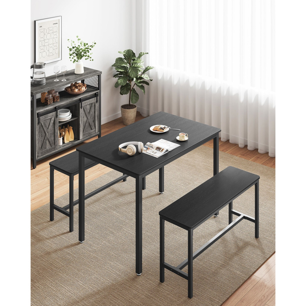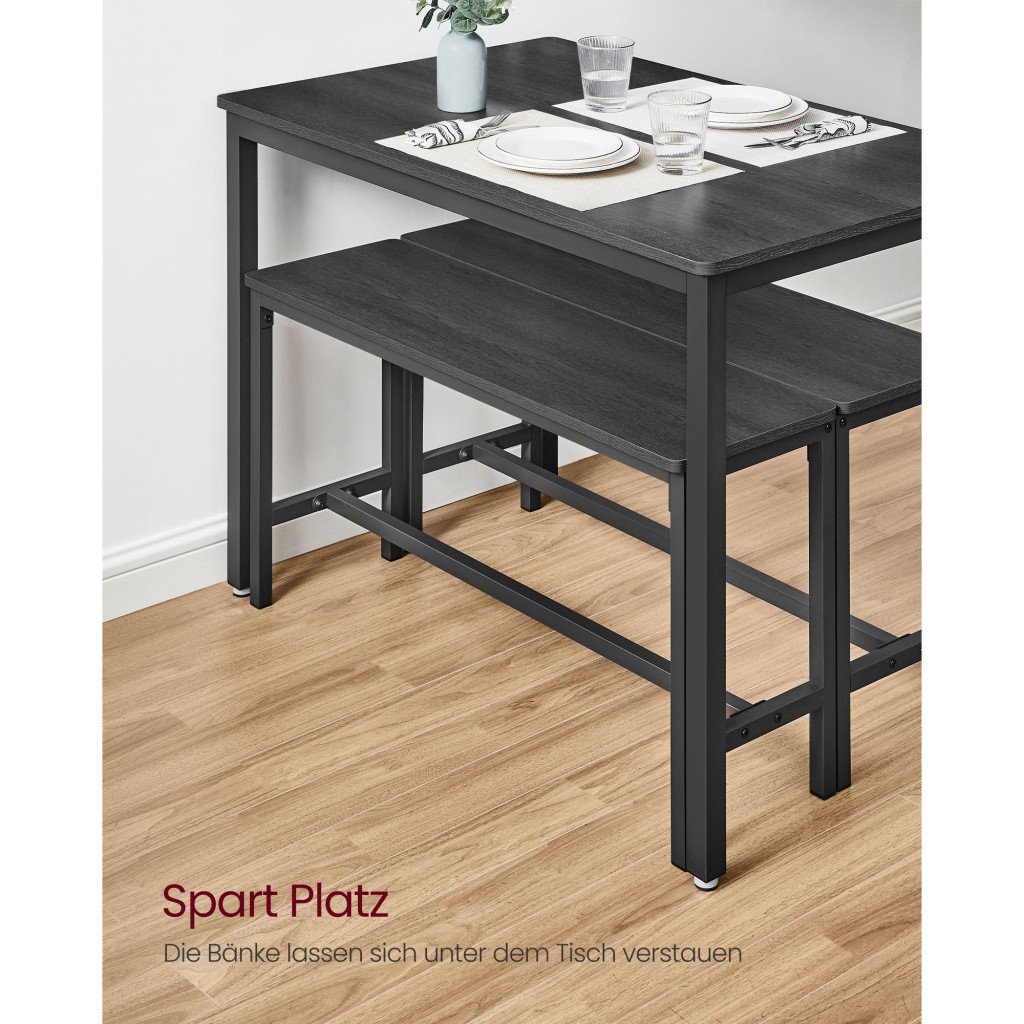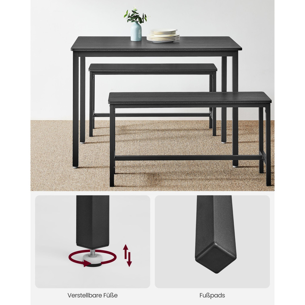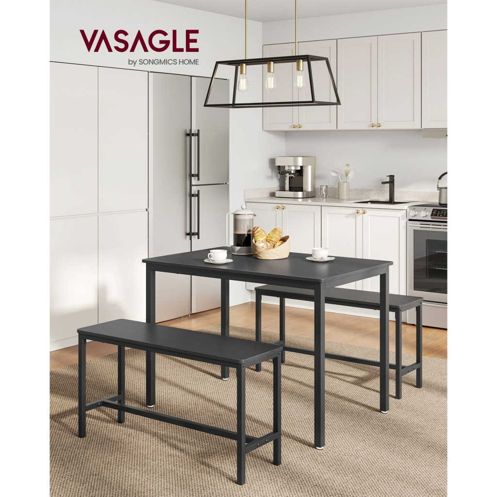 VASAGLE VASAGLE étkezőasztal 2 paddal, 3 darabos szett, konyhaasztal 70 x 110 x 75 cm, 2 pad mindegyik 30 x 97 x 50 cm, acélkeret, hamufekete tinta fekete KDT070B21