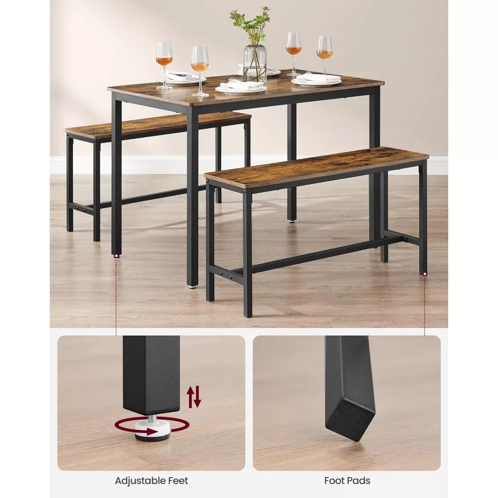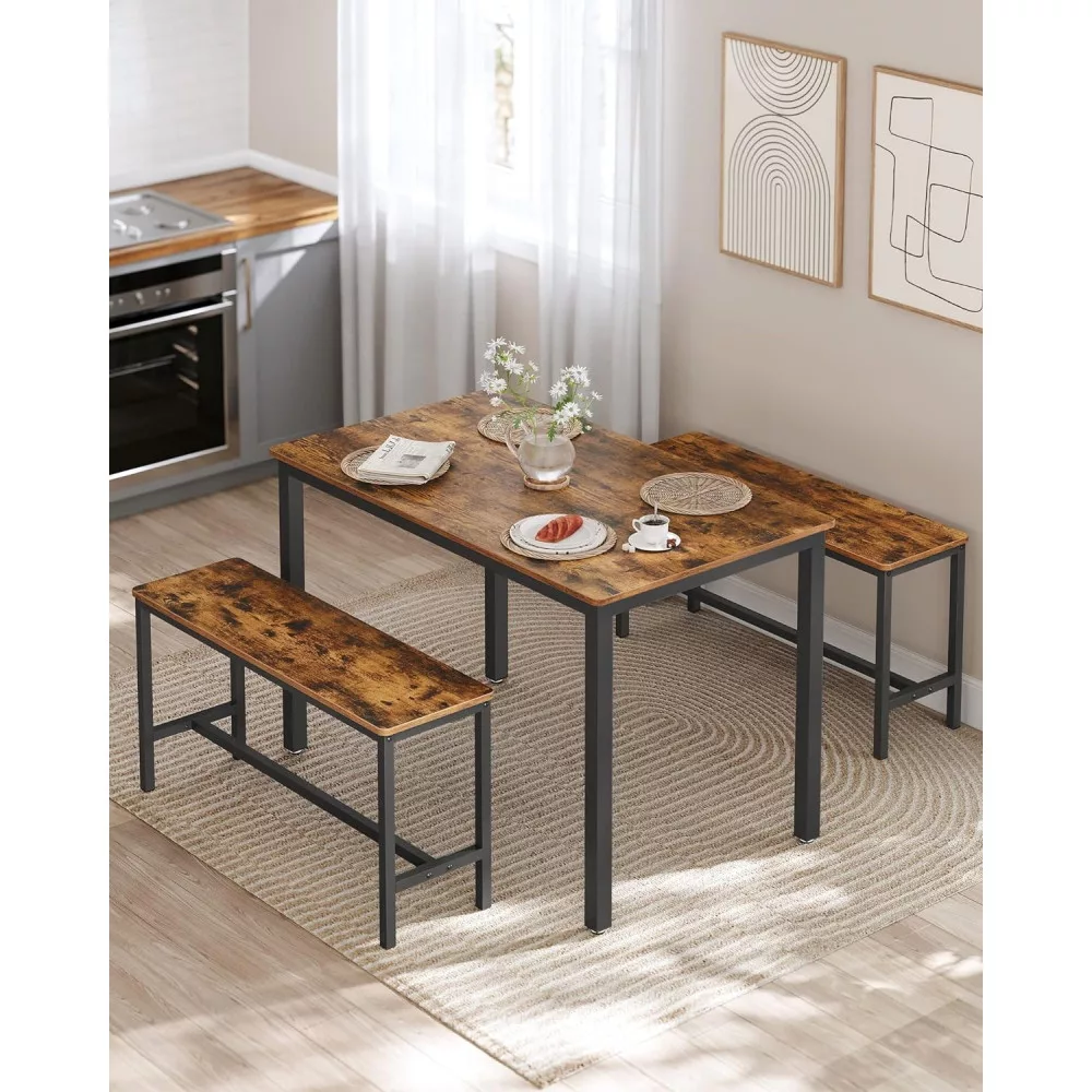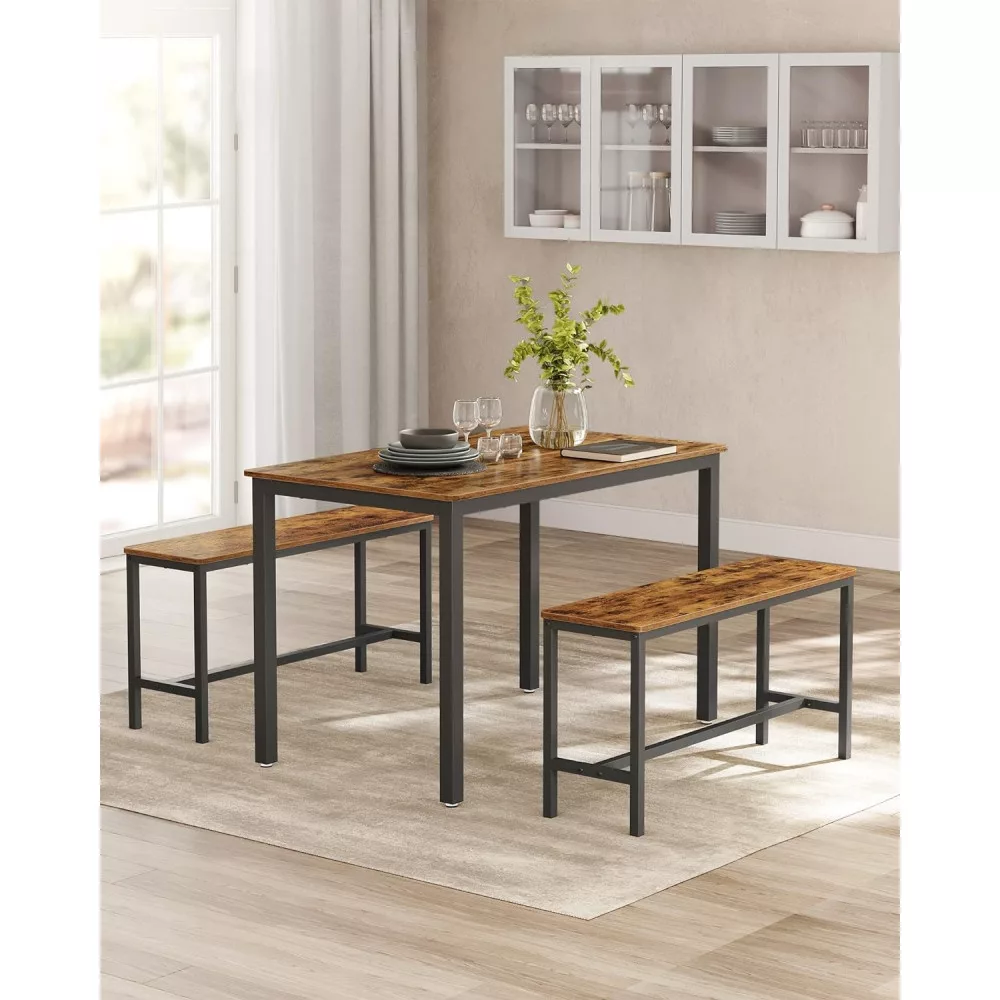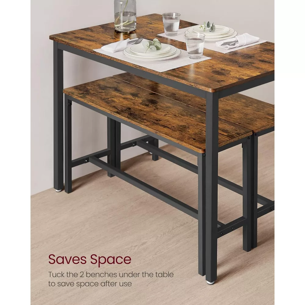 VASAGLE Étkezőasztal két paddal, rusztikus barna 110x70x75cm