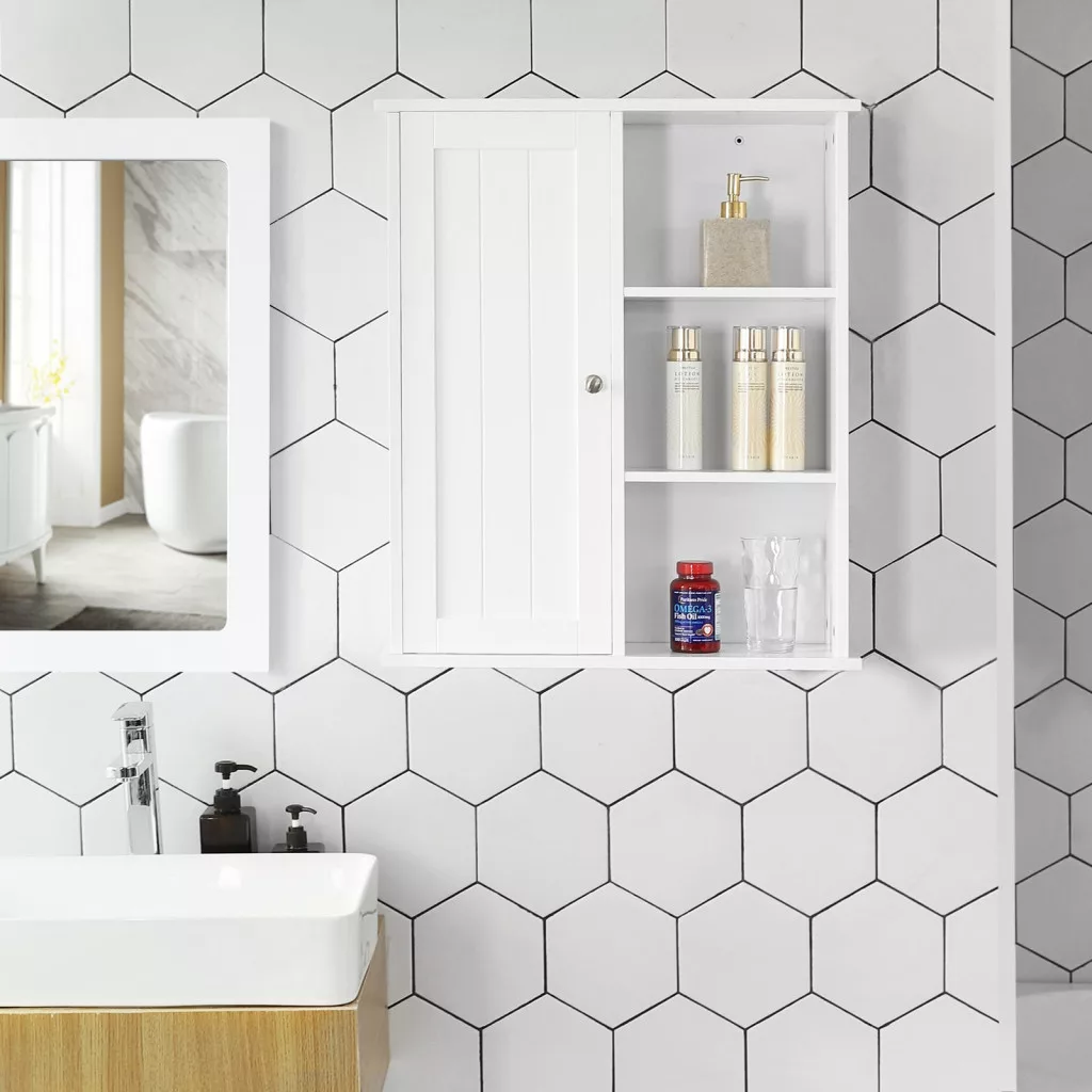 VASAGLE Fürdőszobai Szekrény Fali Tároló Szervező Sarokpolc Gyógyszeres Szekrény