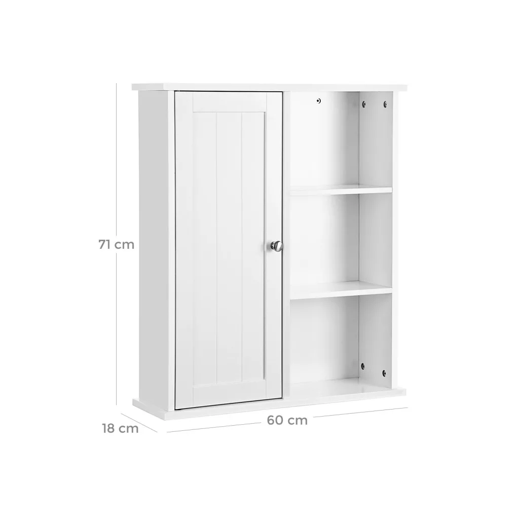 VASAGLE Fali fürdőszoba szekrény, egy ajtós, fehér 60x18x71cm