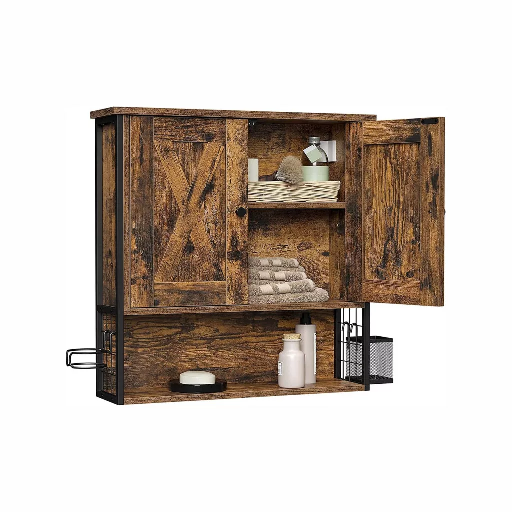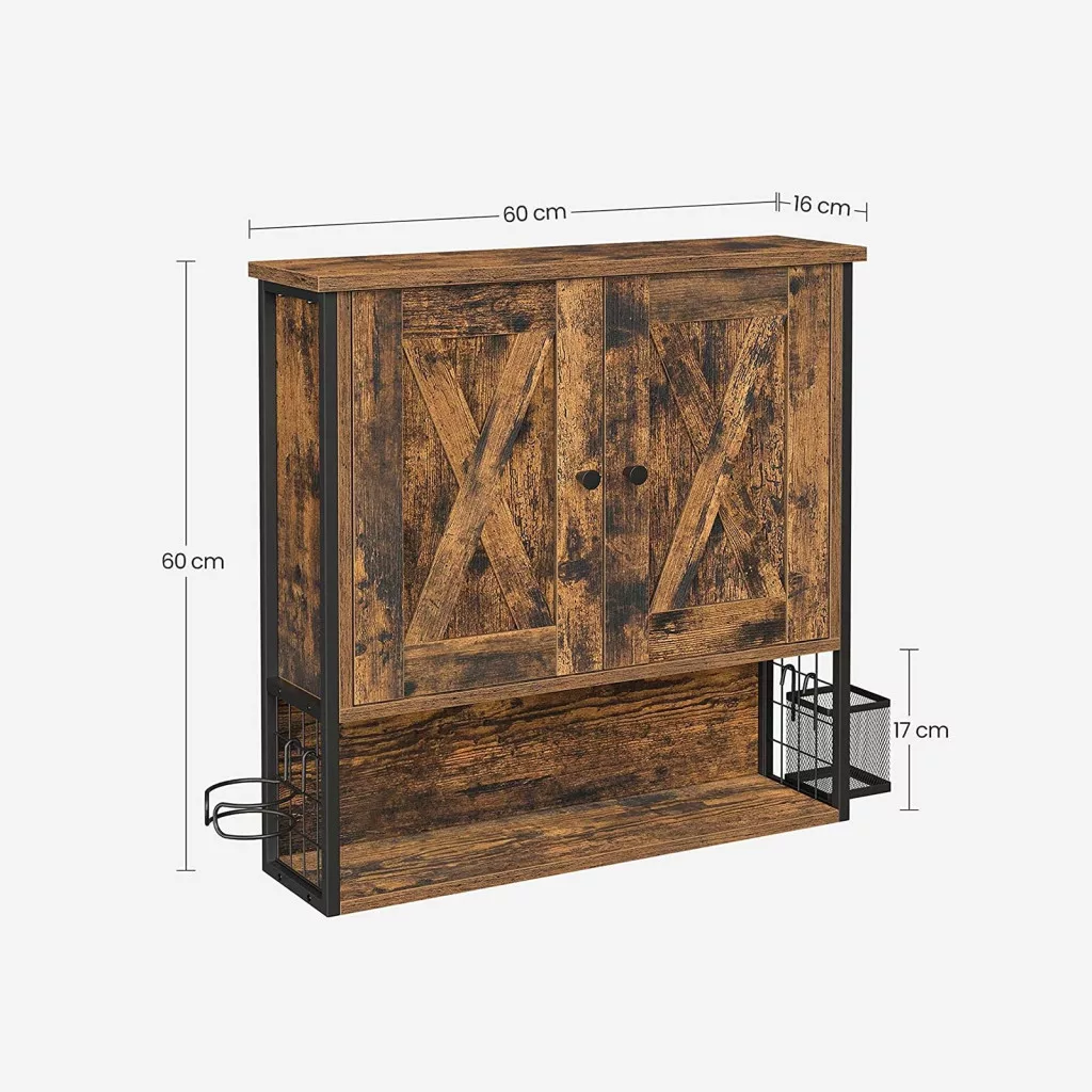 VASAGLE Fali fürdőszoba szekrény, két ajtós, rusztikus barna 60x16x60cm