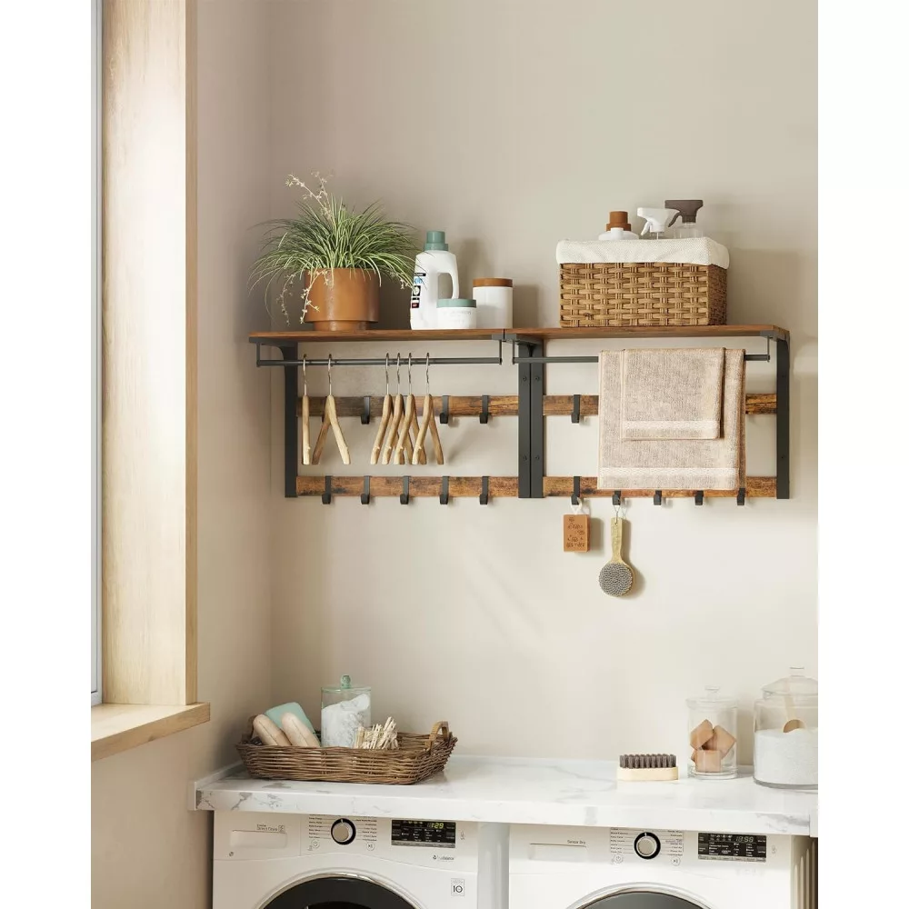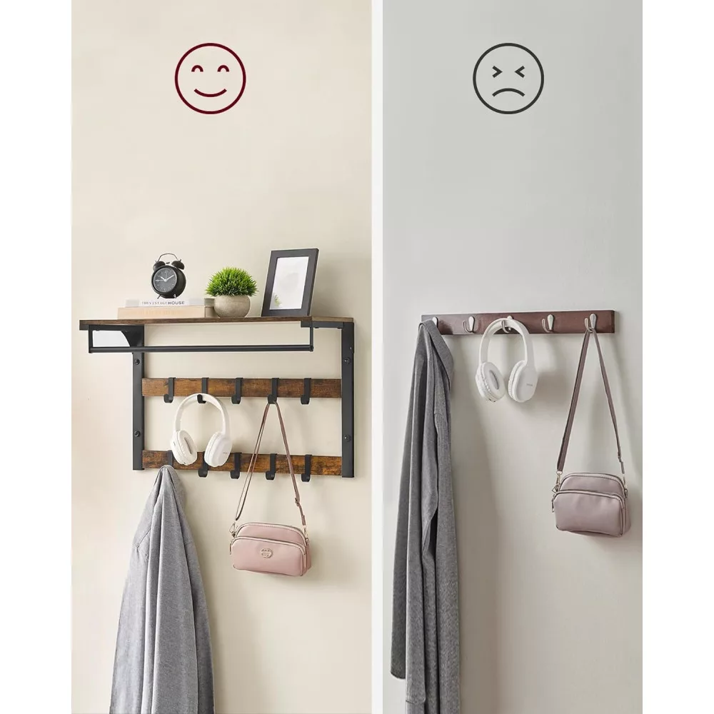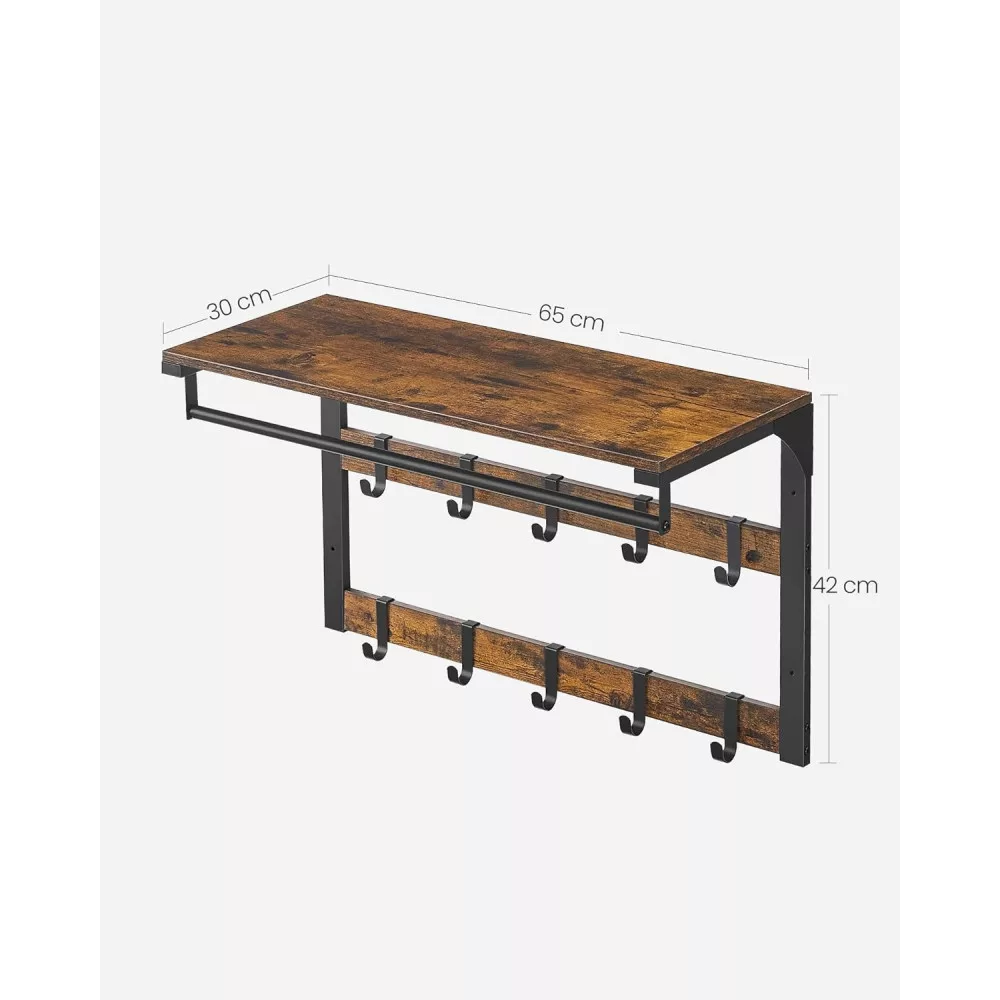 VASAGLE Fali ruhafogas akasztókkal és polccal, rusztikus barna 65x30x42cm