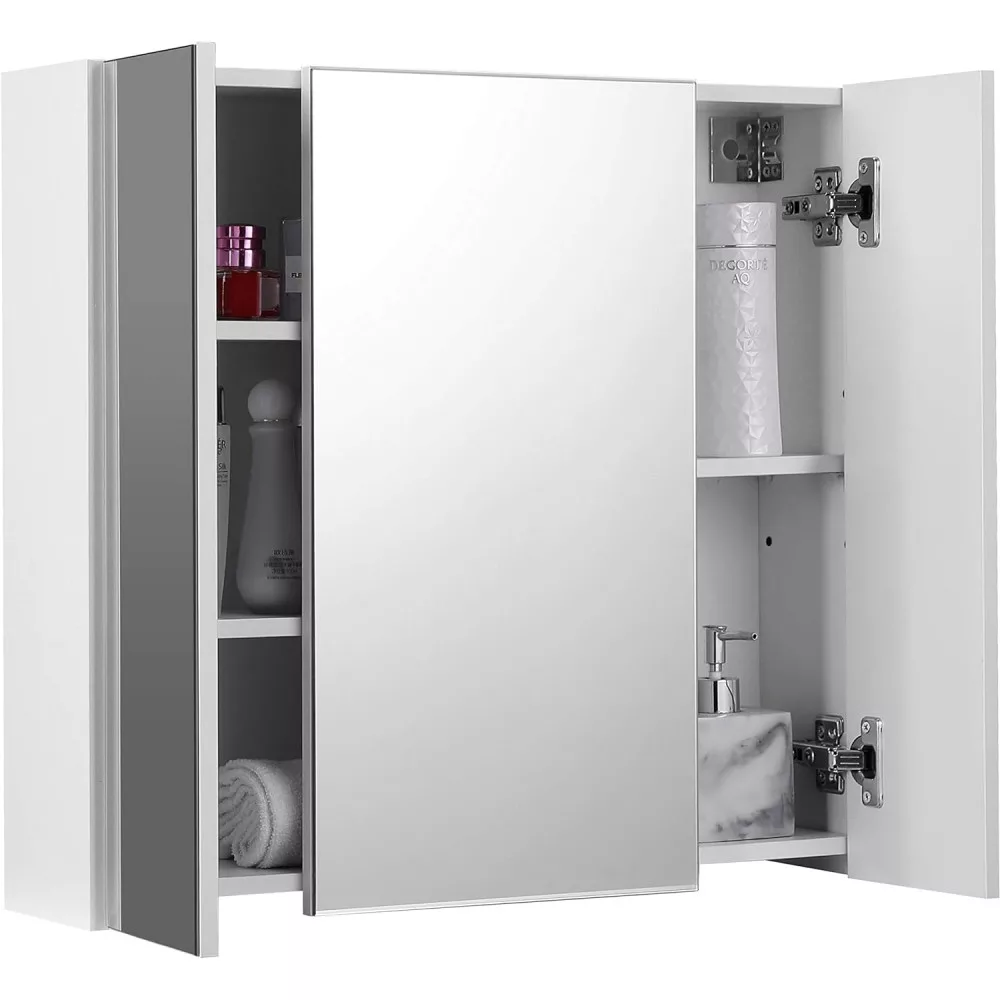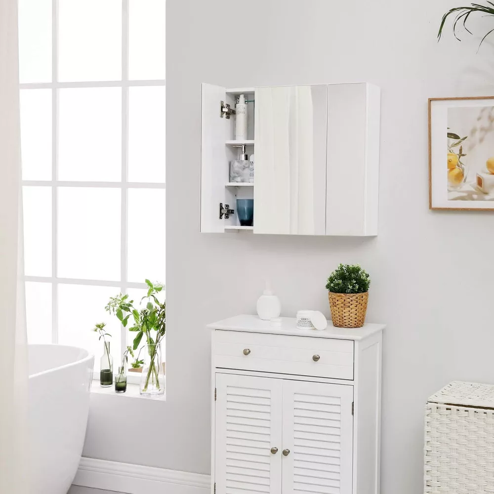 VASAGLE Fürdőszobai falikád, szekrény tükörrel, 3 ajtós tárolószekrény, 60 x 15 x 55 cm,