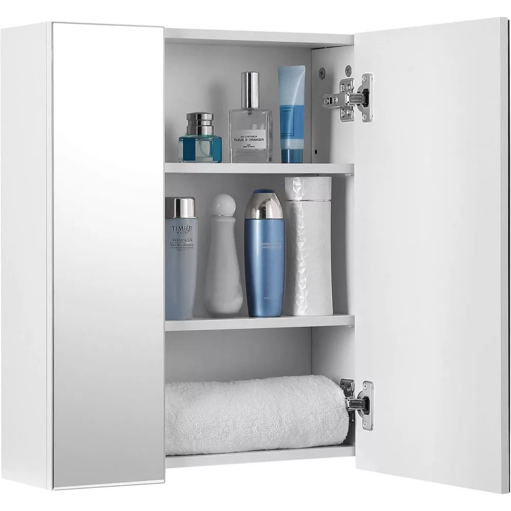 VASAGLE Fali tükrös fürdőszoba szekrény, fehér 60x15x55cm