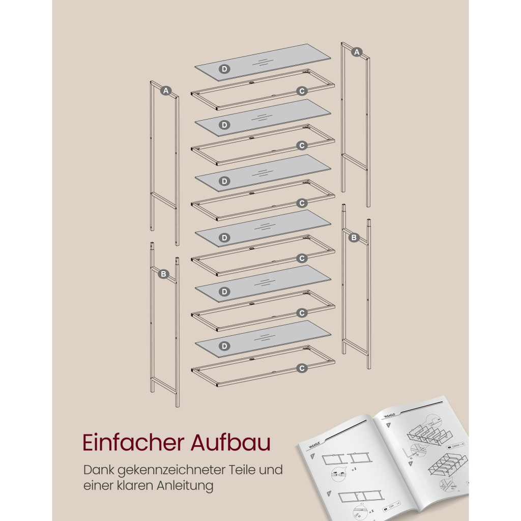 VASAGLE Könyvespolc, 6 szintes könyvespolc, karcsú polcos egység hálószobába,