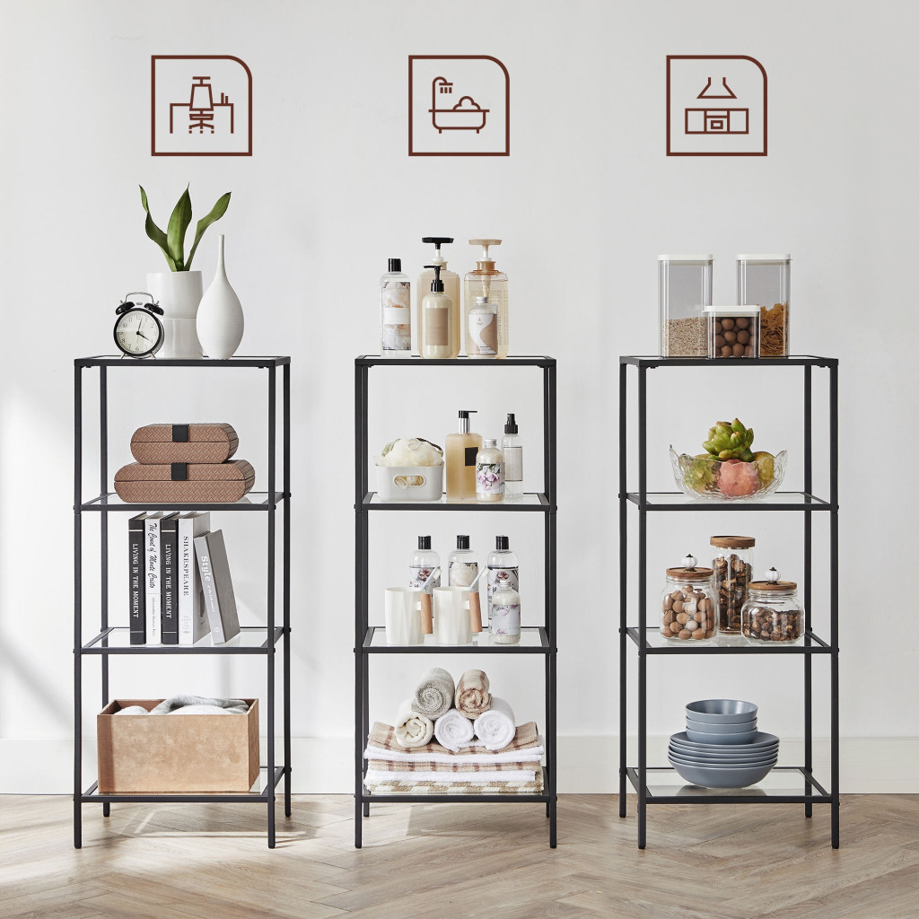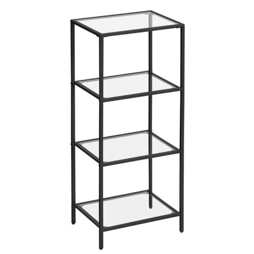 VASAGLE Fém tároló állvány üvegpolcokkal, fekete 40x30x95cm