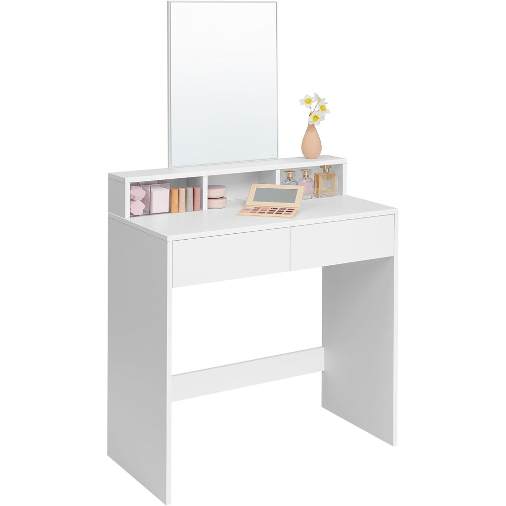 VASAGLE Fésülködőasztal, sminkasztal tükörrel fiókokkal, fehér 80x40x140cm