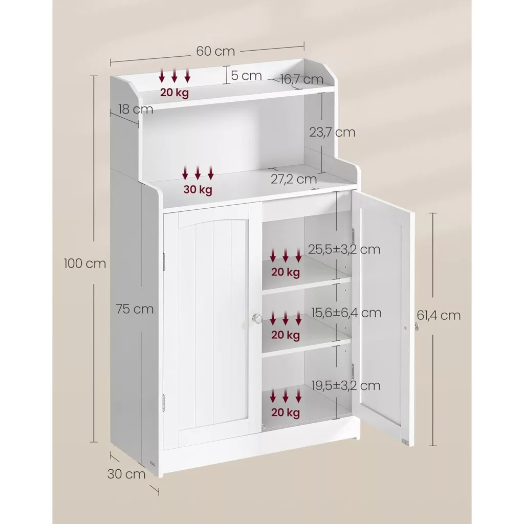 VASAGLE VASAGLE fürdőszobai szekrény, fürdőszobai bútor 2 ajtóval, 2 állítható polccal, 30 x 60 x 100 cm, szekrény étkezőbe, konyhába, nappaliba, felhőfehér színben BBC770W01