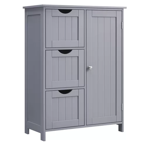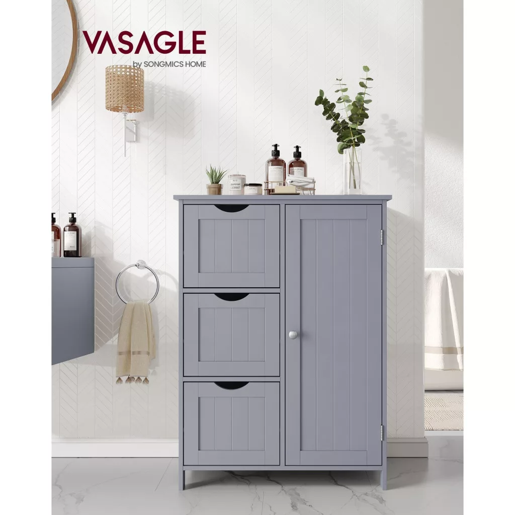 VASAGLE Fürdőszoba szekrény, ajtós, 3 fiókos szekrény, szürke 60x30x81cm